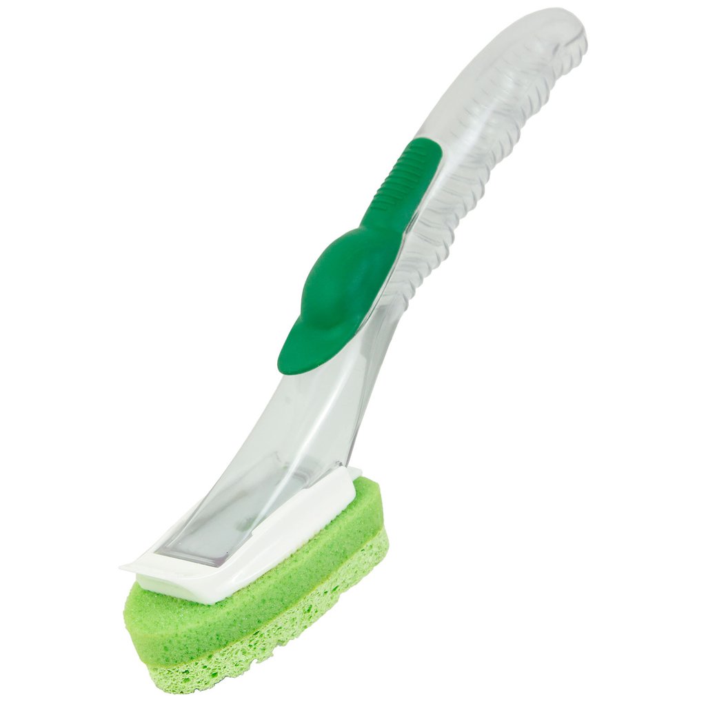 • Sturdy PVC handle with contoured grip designed to hold any dish soap