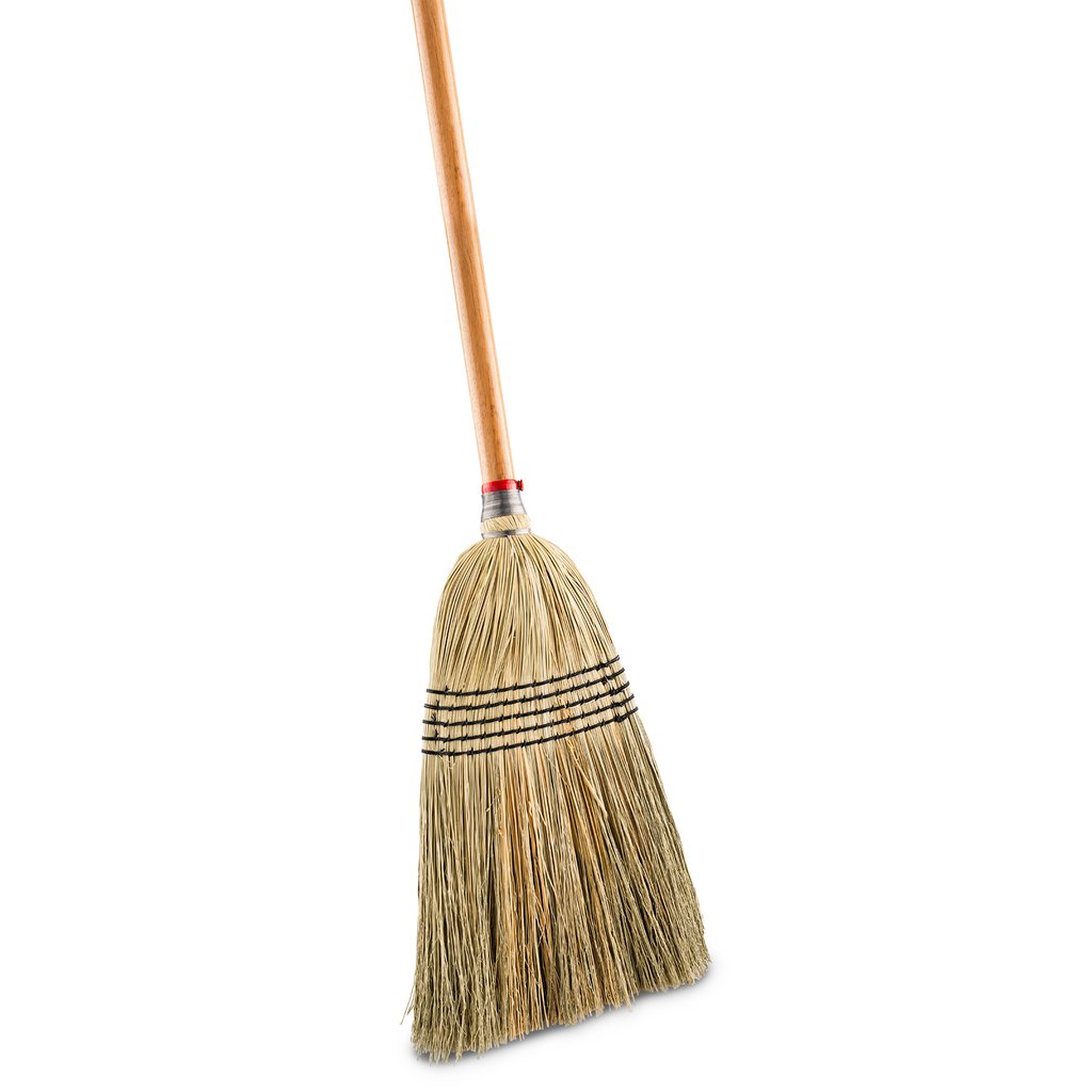 The Janitor Corn Broom with Wood Handle is built to last by using 100% natural broom corn. By utilizing pure broom corn and no filler grasses, the broom will not rot and fall apart if exposed to moisture. The large broom head maintains its shape well for a long life with the help of 5 rows of stitching. It's strong, 1-1/8” thick wooden handle is also a key to any tough outdoor sweeping needs.