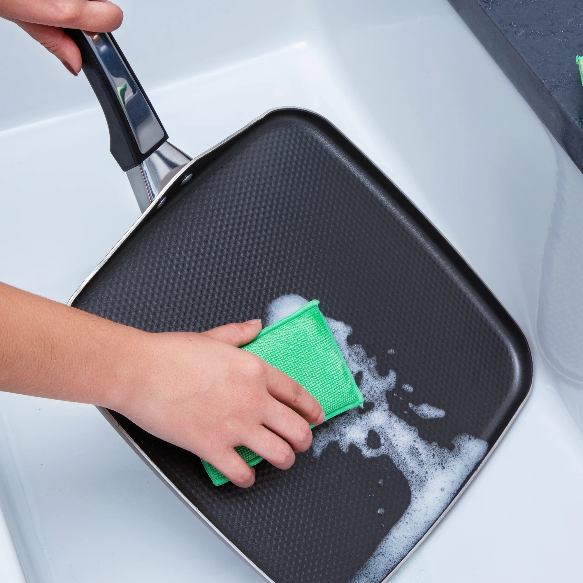 - Microfiber on one side, scrubbing dot pattern surface on the other
