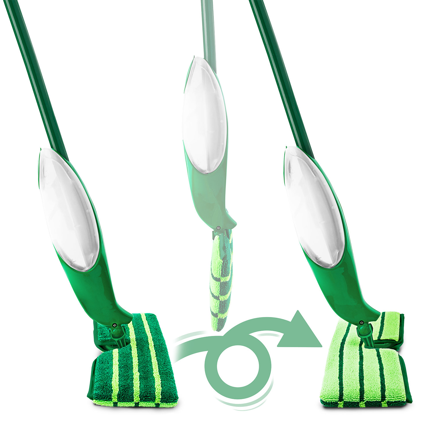 You'll flip for the convenience and cleaning power of the new and improved Freedom® Dual-Sided Microfiber Spray Mop. It allows you to free yourself from wasteful disposable cleaning pads and expensive batteries. It also gives you the freedom to use your own cleaning solution in the refillable tank. Excellent on wood, laminate, tile, marble, linoleum, stone, and more, the TripleGrip™ dual-sided microfiber pad absorbs and deep cleans your floors. You can reach into the toughest and tightest of corners with precise control, thanks to the 360° swivel neck. When you’re done cleaning, simply remove the mop head and toss it in the laundry to be cleaned up to 50 times.