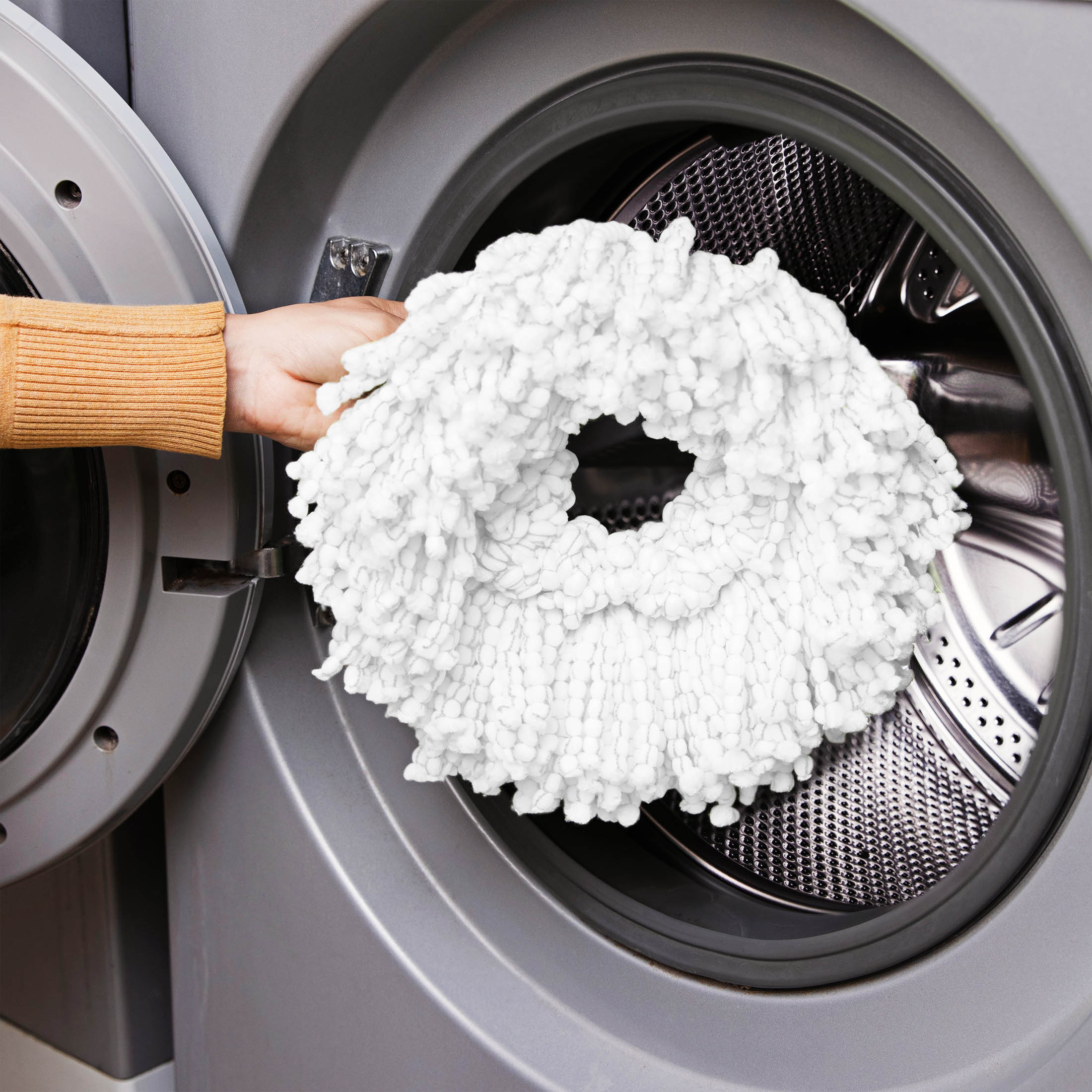 - Extra-large, machine-washable microfiber mop head