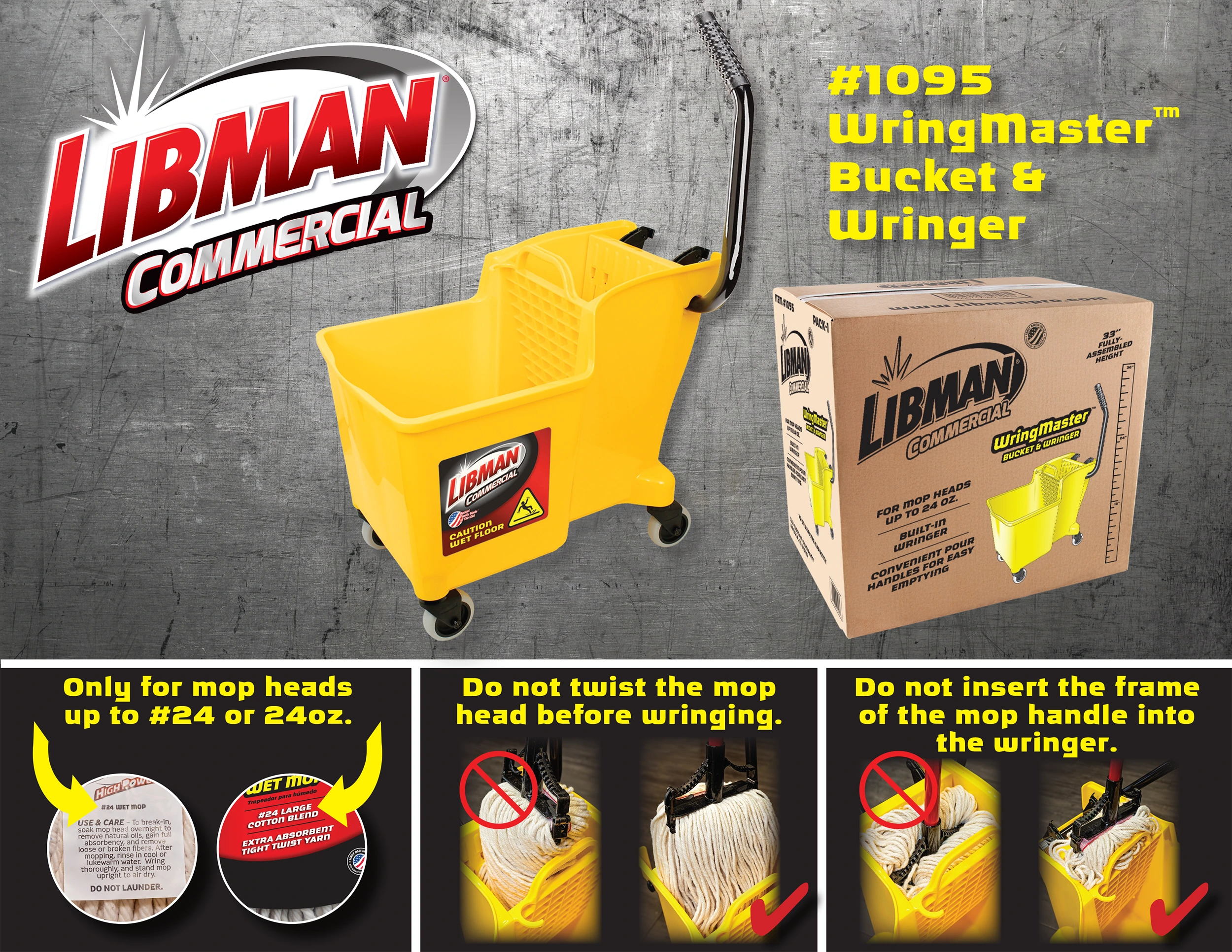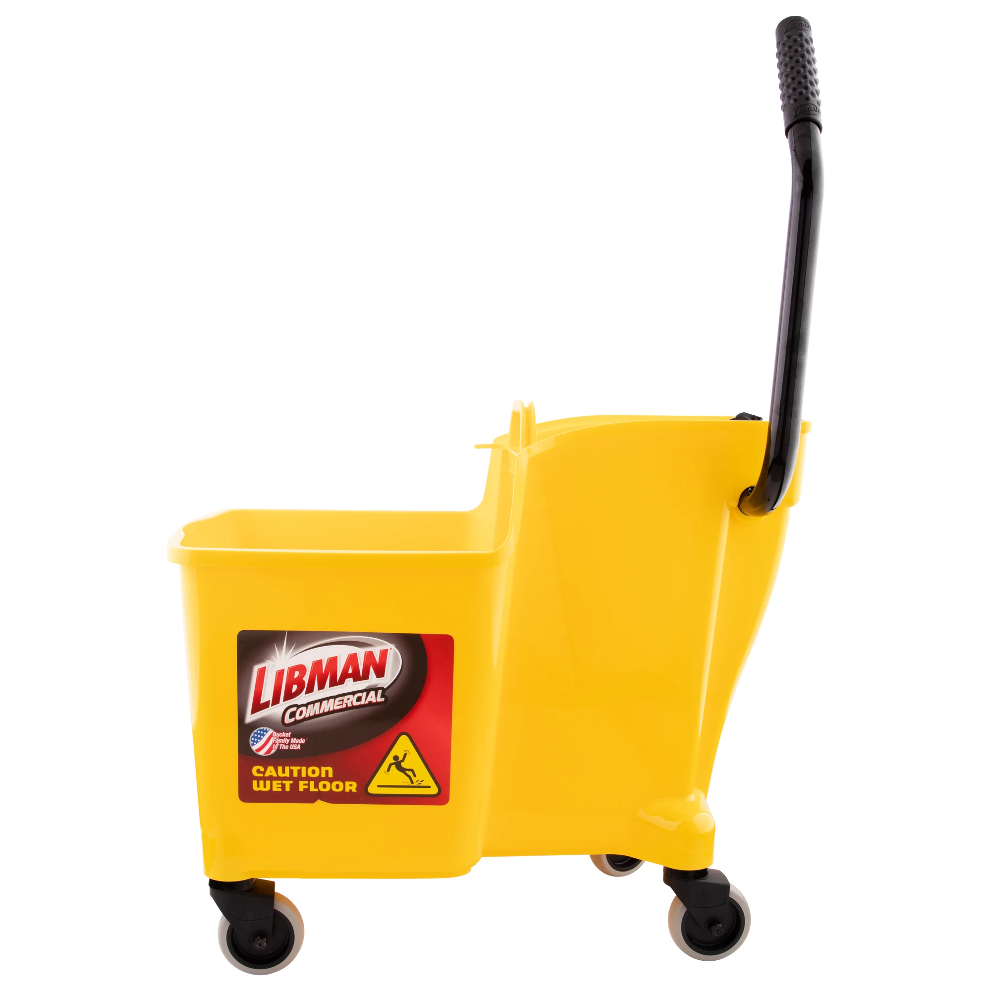 - Solid polypropylene one-piece molded bucket and wringer with premium rubber casters