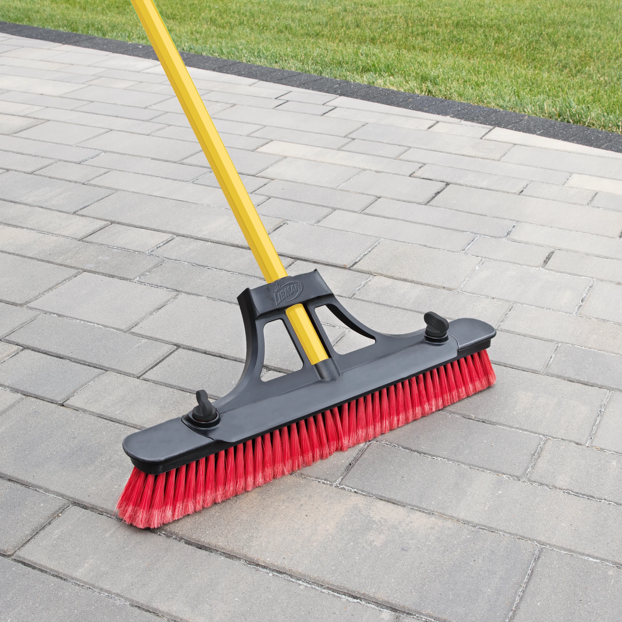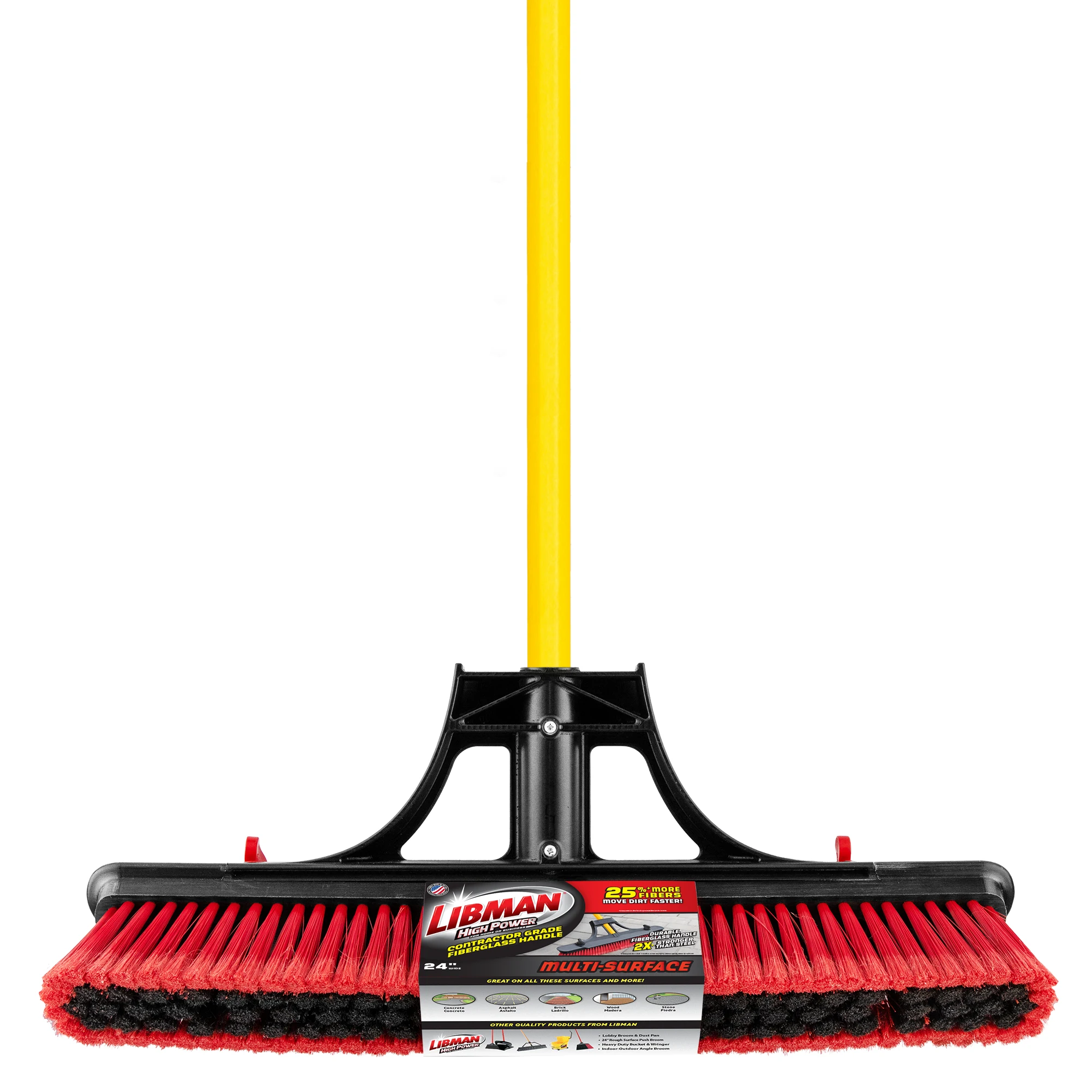 This multi-surface push broom with a fiberglass handle is great for heavy-duty, industrial, and contractor use. It cleans any surface, such as concrete, brick, wood, stone, asphalt, and more. The firm, flexible polymer fibers are designed to clean most surface types without damaging the surface.