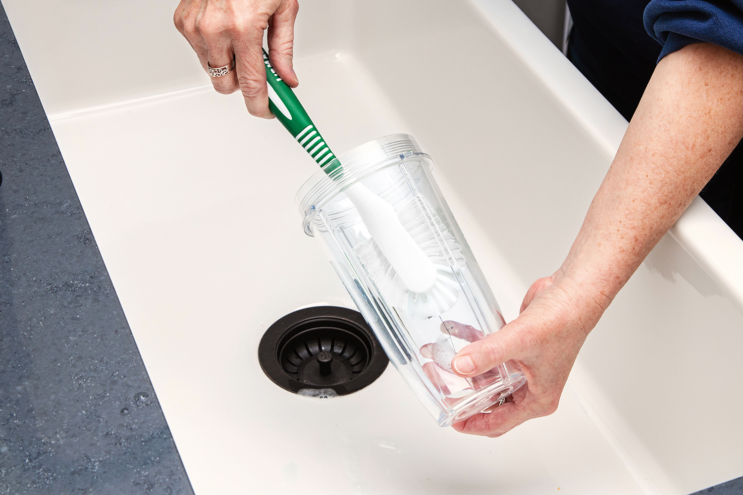 - 3” x 3.25” rounded scrub surface reaches corners and tough areas