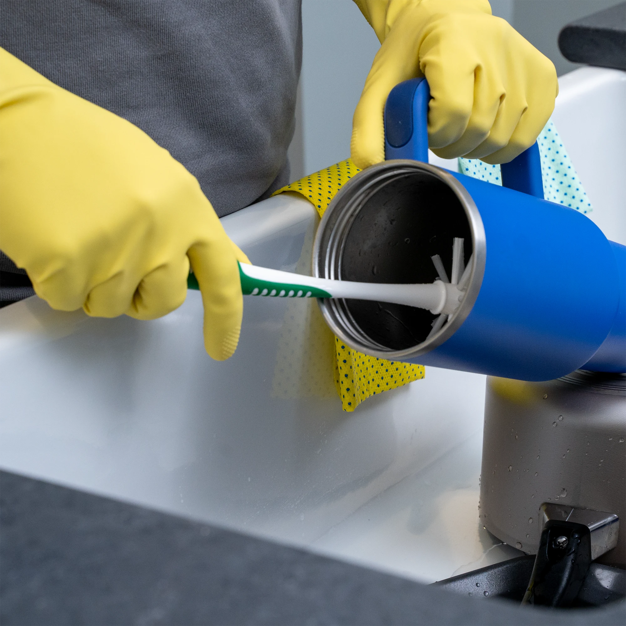 - Bristle length of 1” with 7 tufts of stiff green bristles on the end to scrub the base of bottles and cups
