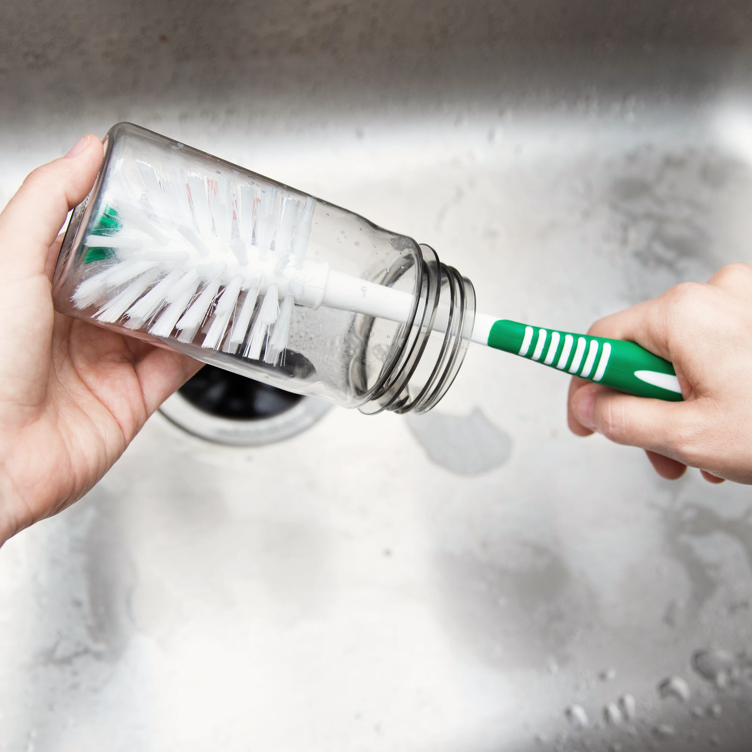 - Soft and flexible polymer bristles made of recycled PET get into all shapes and sizes of bottles and other areas