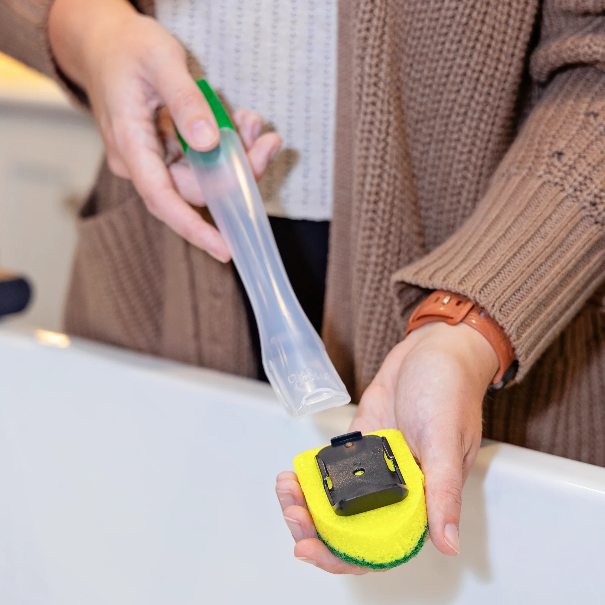 - Easy on and off insert plate slides onto dish wand