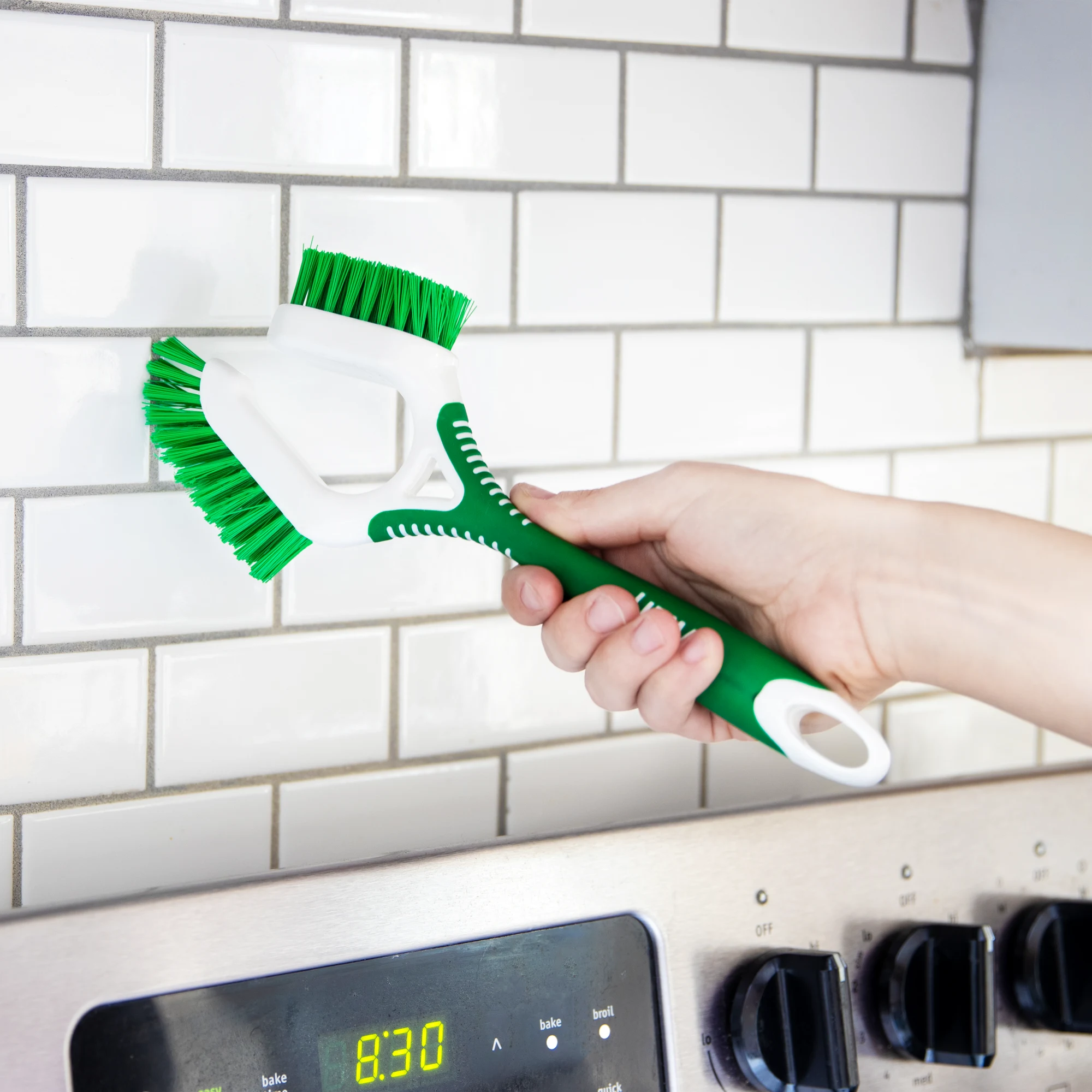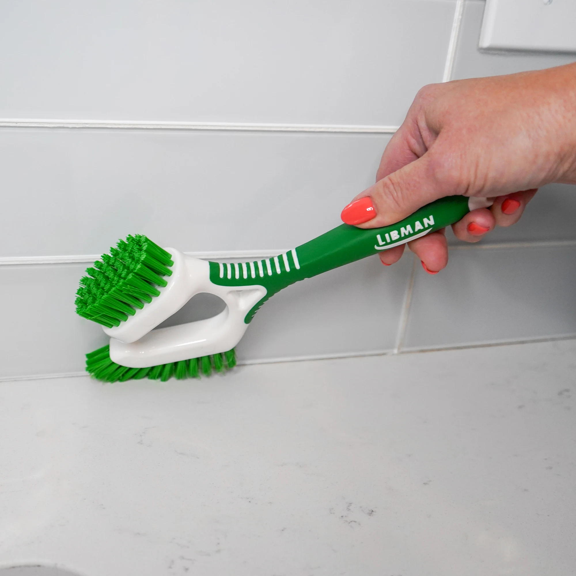- Narrow grout brush on one side with wider, all-purpose scrub brush on the other