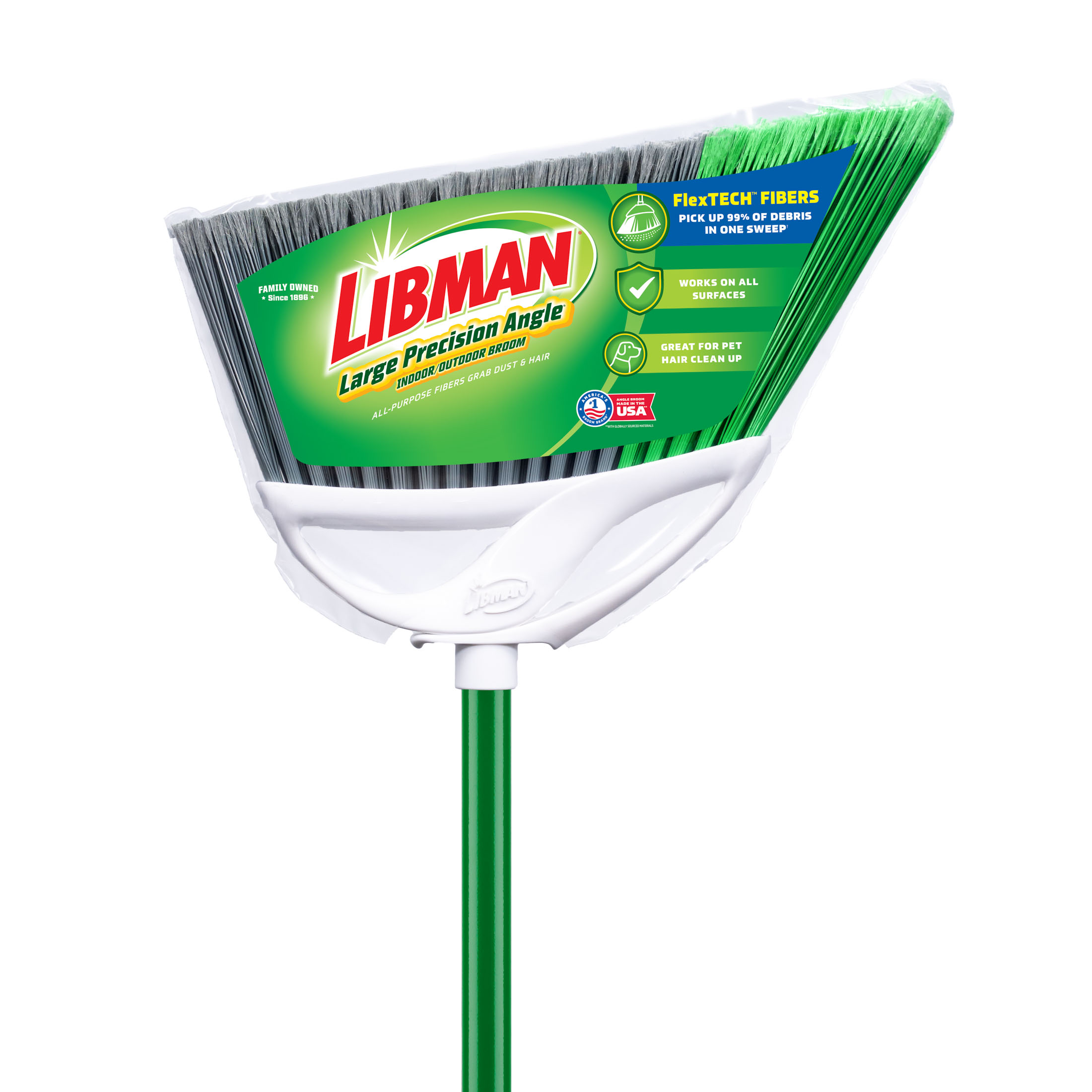 The Large Precision Angle® Indoor/Outdoor Broom is specifically designed for everyday cleaning. Featuring a 13” wide sweeping path that can be used on a variety of surfaces, this steel-handled broom has angled bristles to reach underneath desks and into corners. The 5” long fibers are made from recycled PET bottles, creating an effective sweeping path while keeping plastic out of landfills. The handle connection point is protected from pressure and liquid/rust deep inside the broom block.