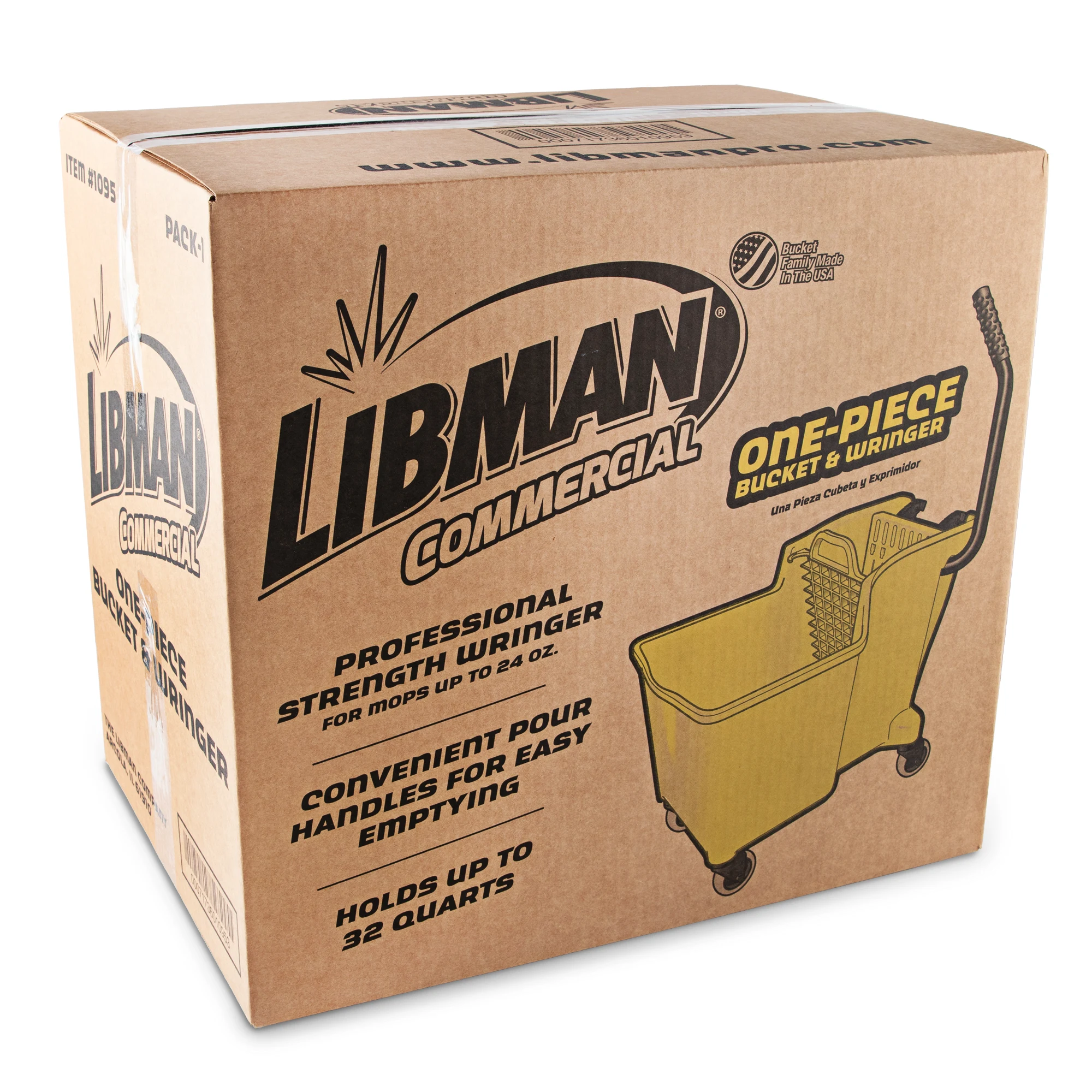 - Solid polypropylene one-piece molded bucket and wringer with premium rubber casters