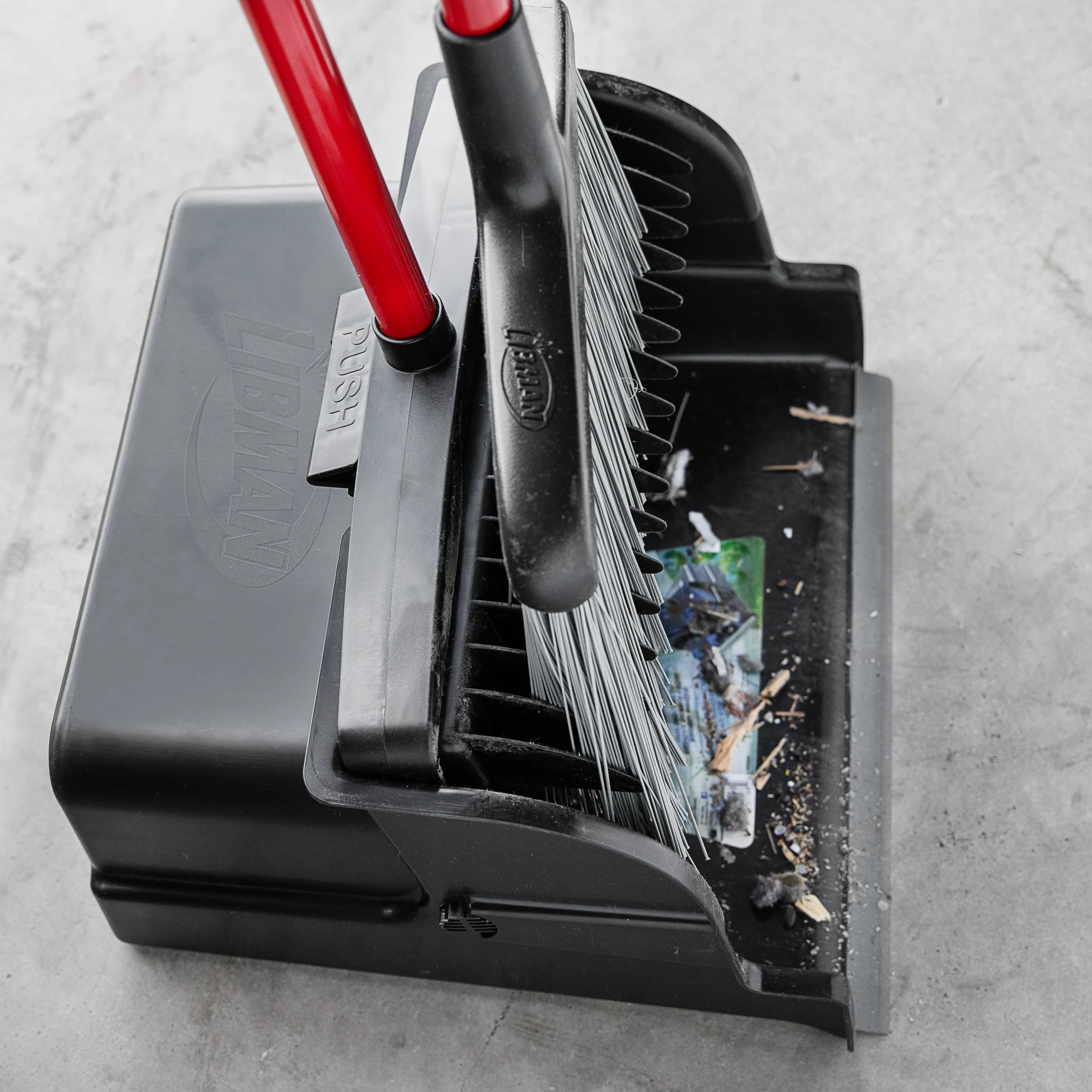 The Large Scoop Dustpan gets the job done on any quick pick-ups of larger debris and garbage. One of the key features is it's ability to lock or unlock the dustpan in place. While unlocked, the pan automatically swivels vertically when it is picked up to hold the debris inside. Built-in "teeth" also clean out any wide-angle broom's bristles directly into the pan. The angled handle grip lightens the load on the wrists while carrying up to 30 lbs of gravel, garbage, debris, and more.