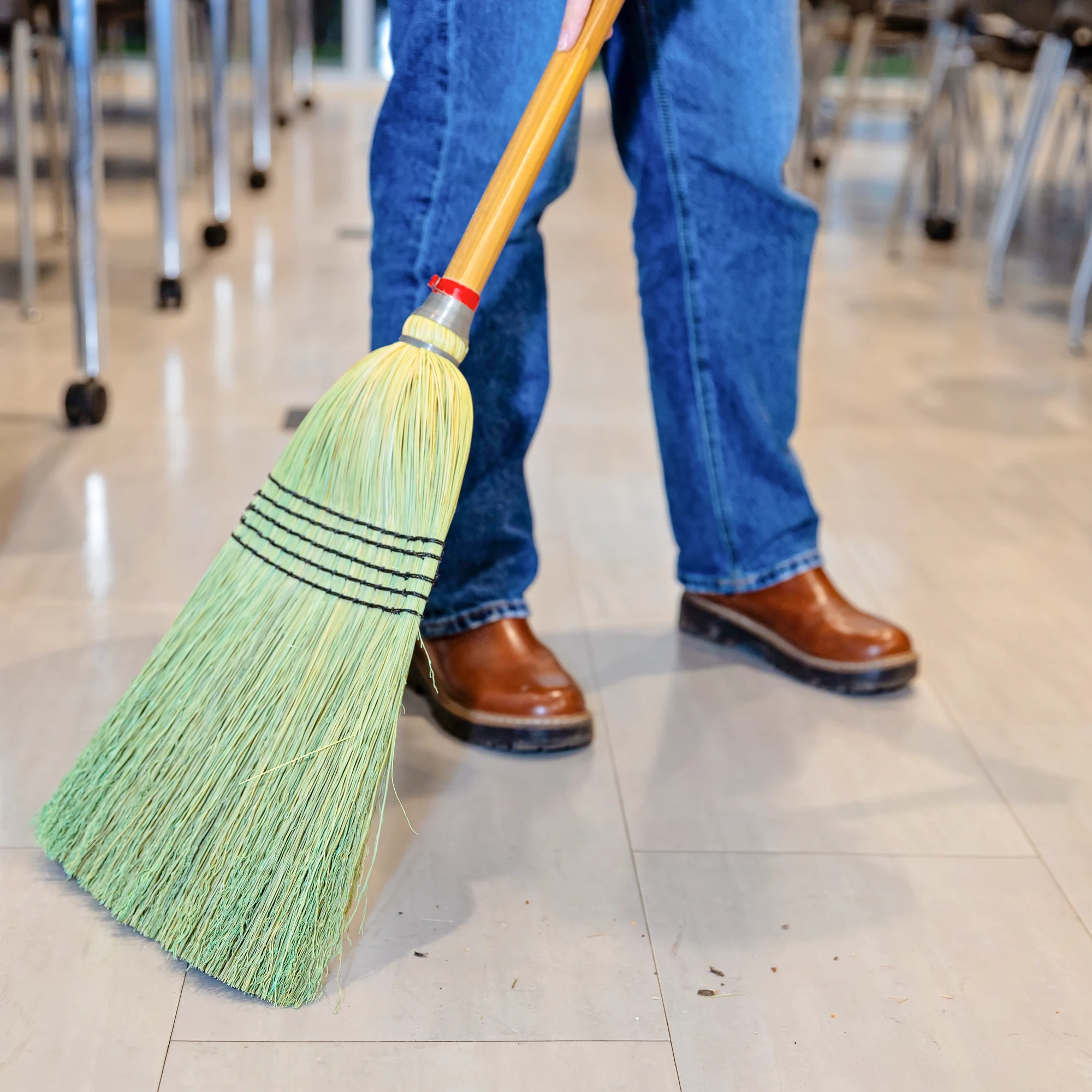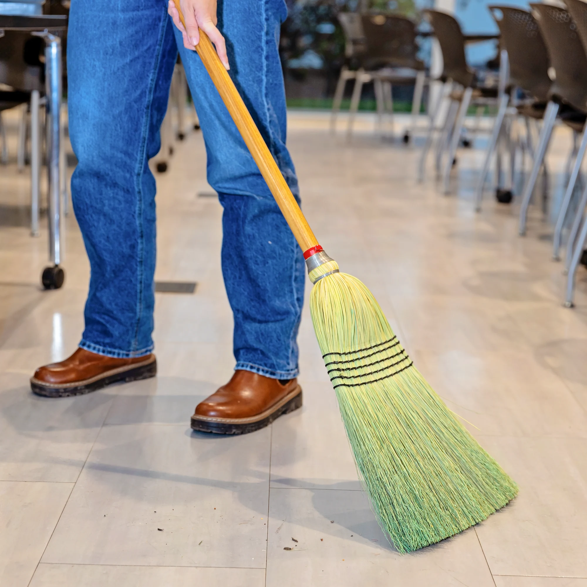 The Janitor Corn Broom with Wood Handle is built to last by using 100% natural broom corn. By utilizing pure broom corn and no filler grasses, the broom will not rot and fall apart if exposed to moisture. The large broom head maintains its shape well for a long life with the help of 5 rows of stitching. It's strong, 1-1/8” thick wooden handle is also a key to any tough outdoor sweeping needs.