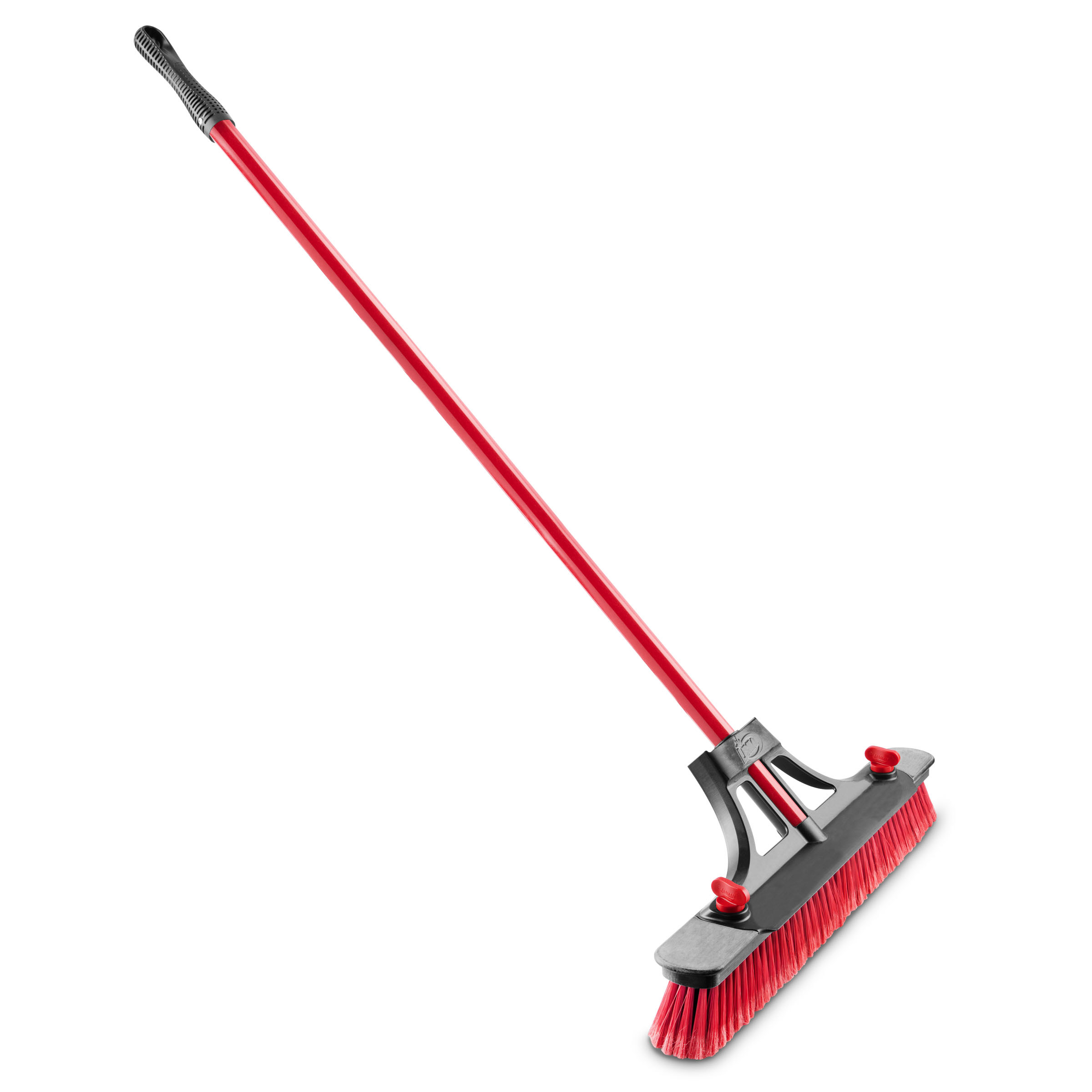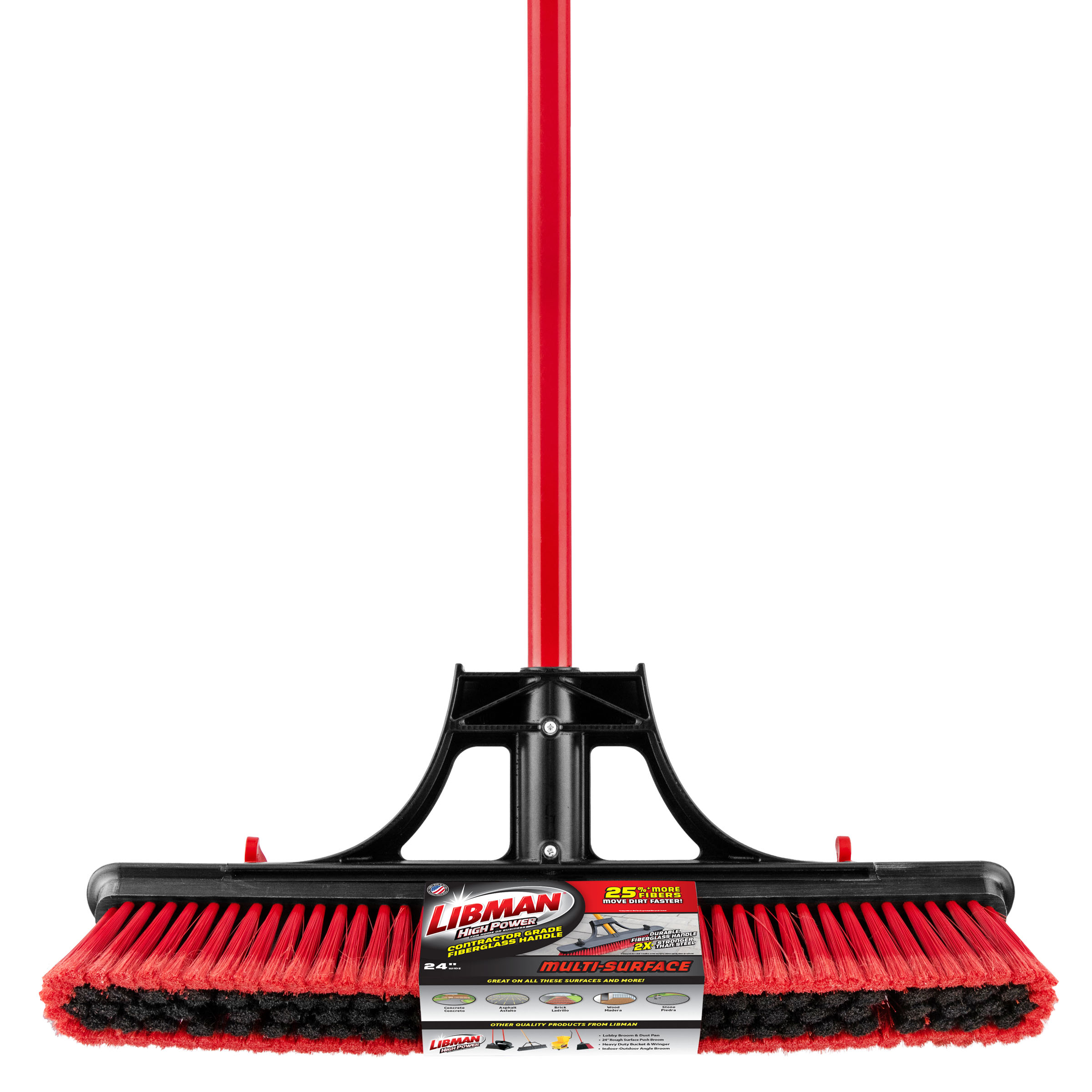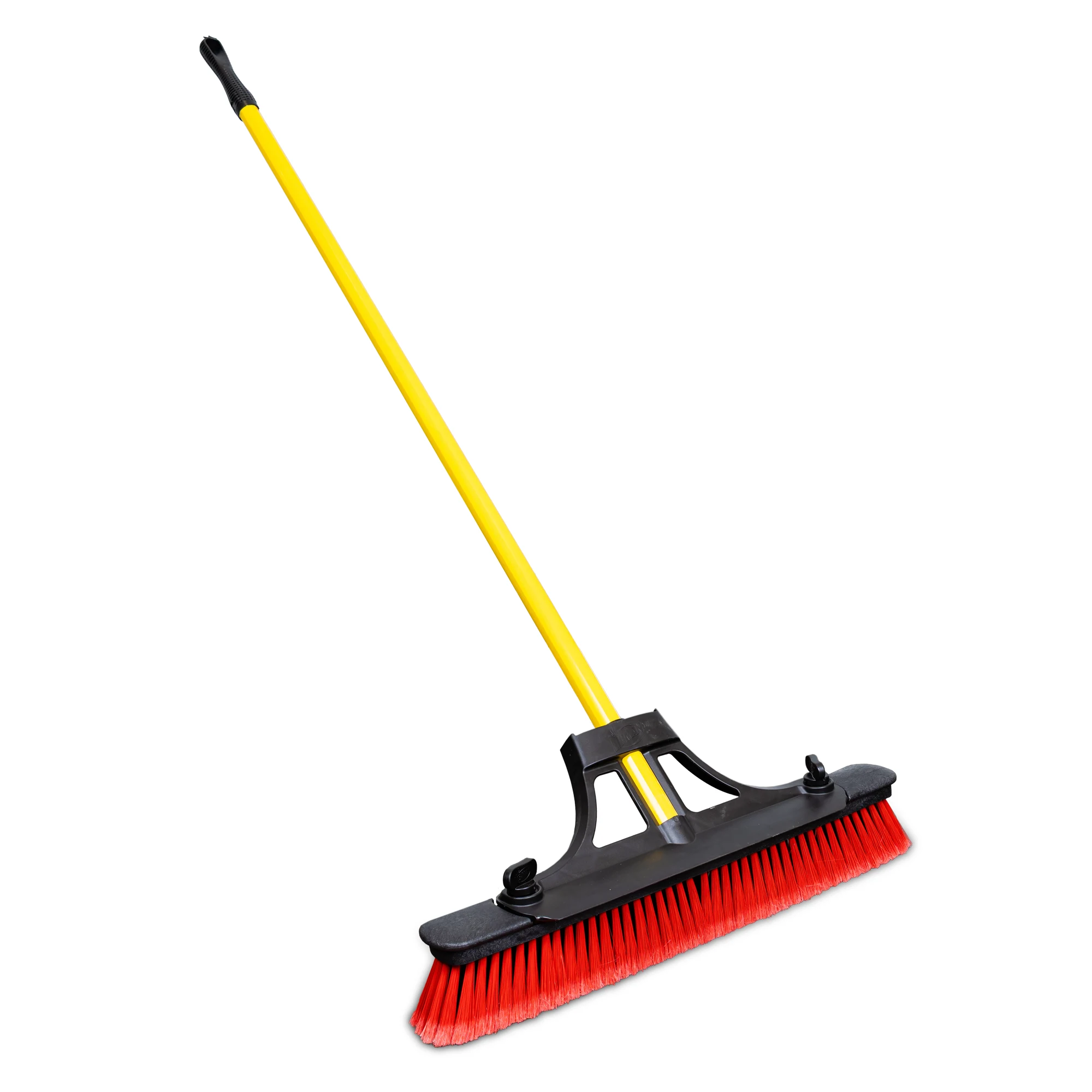 This multi-surface push broom with a fiberglass handle is great for heavy-duty, industrial, and contractor use. It cleans any surface, such as concrete, brick, wood, stone, asphalt, and more. The firm, flexible polymer fibers are designed to clean most surface types without damaging the surface.