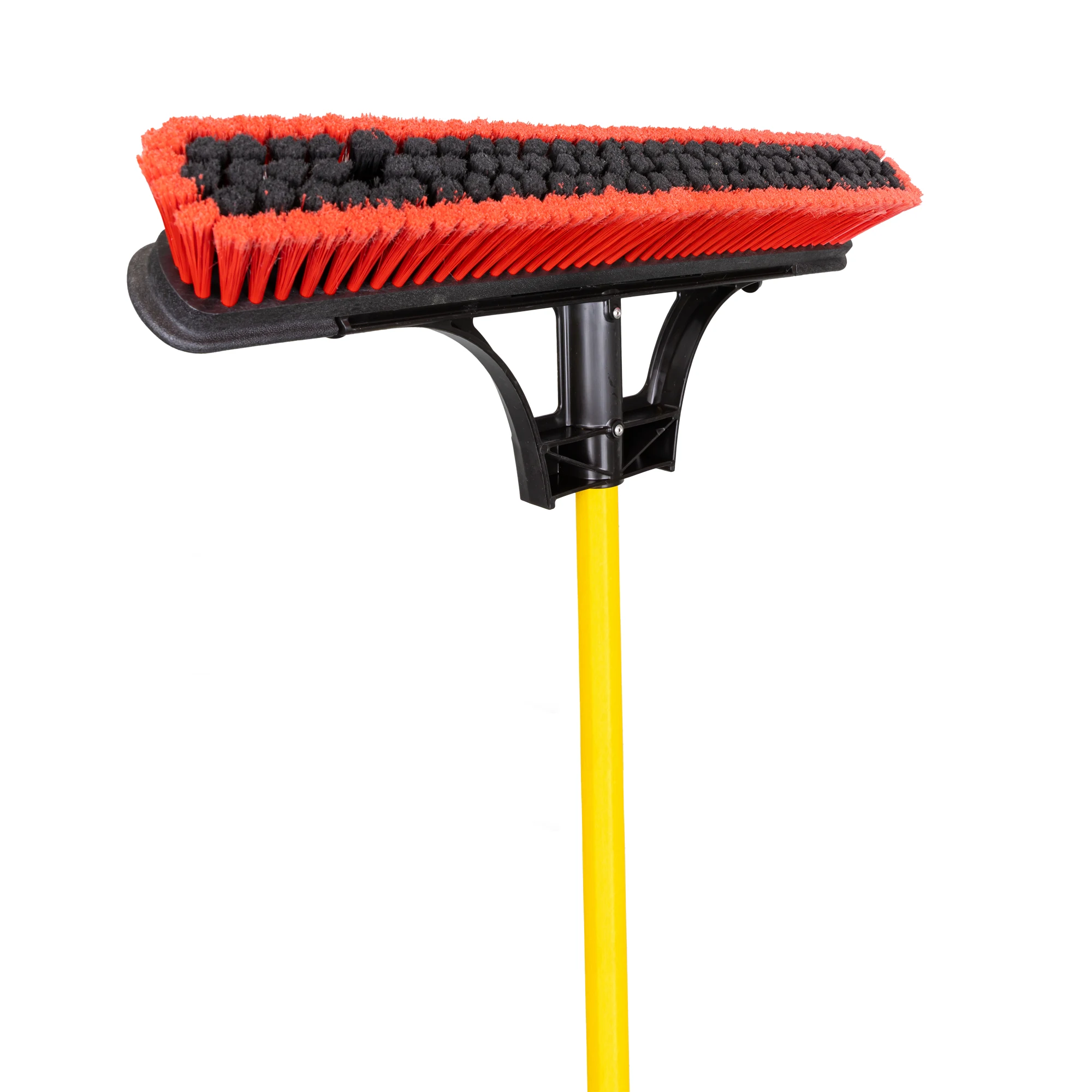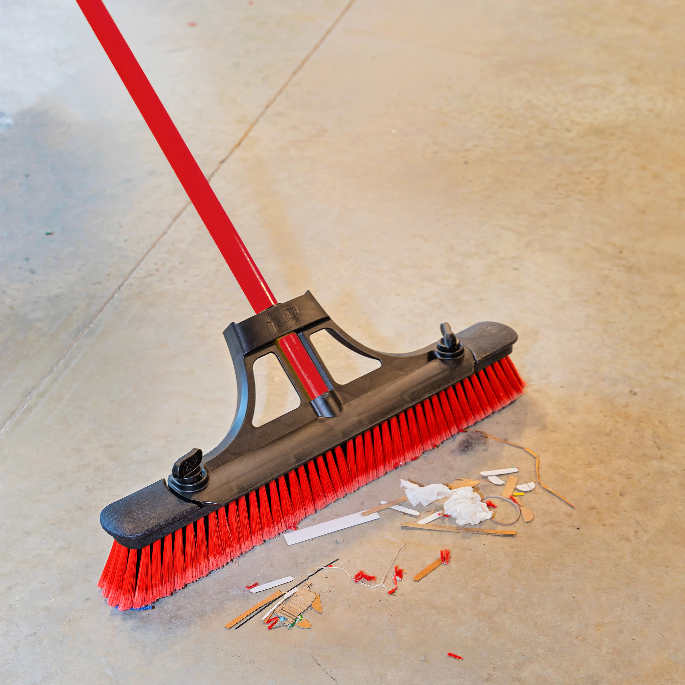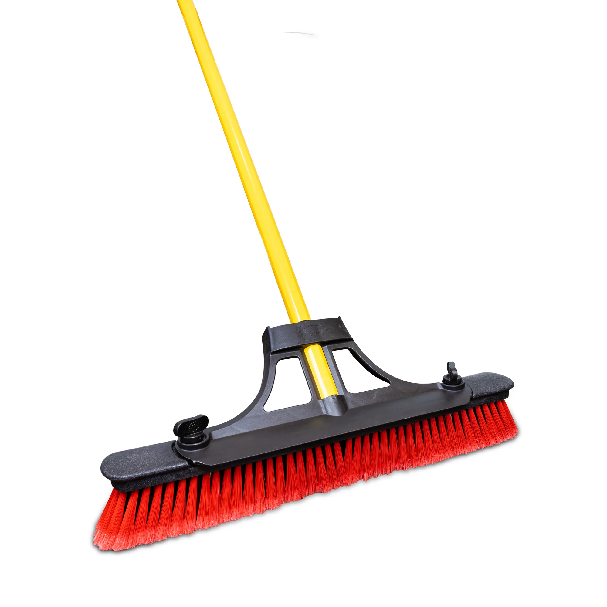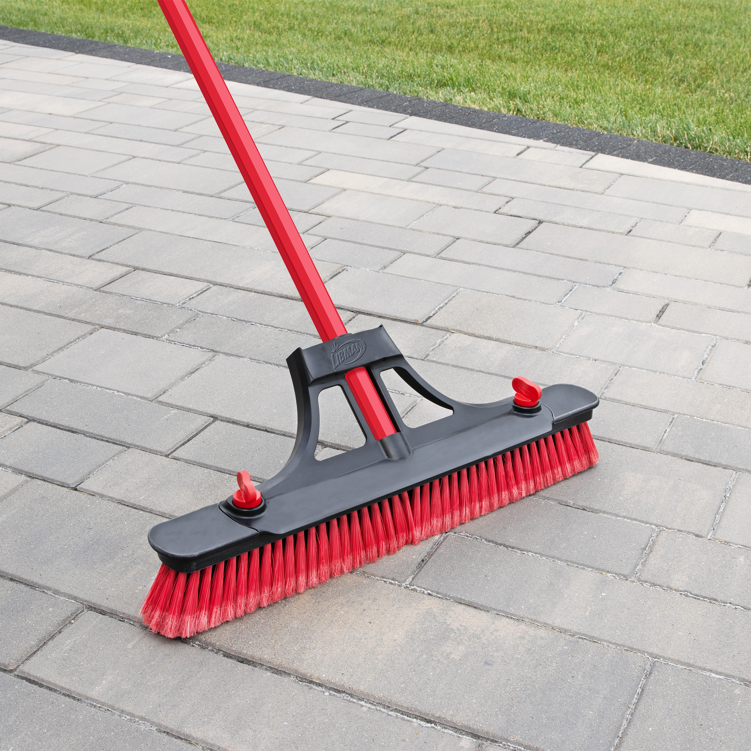 This multi-surface push broom with a fiberglass handle is great for heavy-duty, industrial, and contractor use. It cleans any surface, such as concrete, brick, wood, stone, asphalt, and more. The firm, flexible polymer fibers are designed to clean most surface types without damaging the surface.