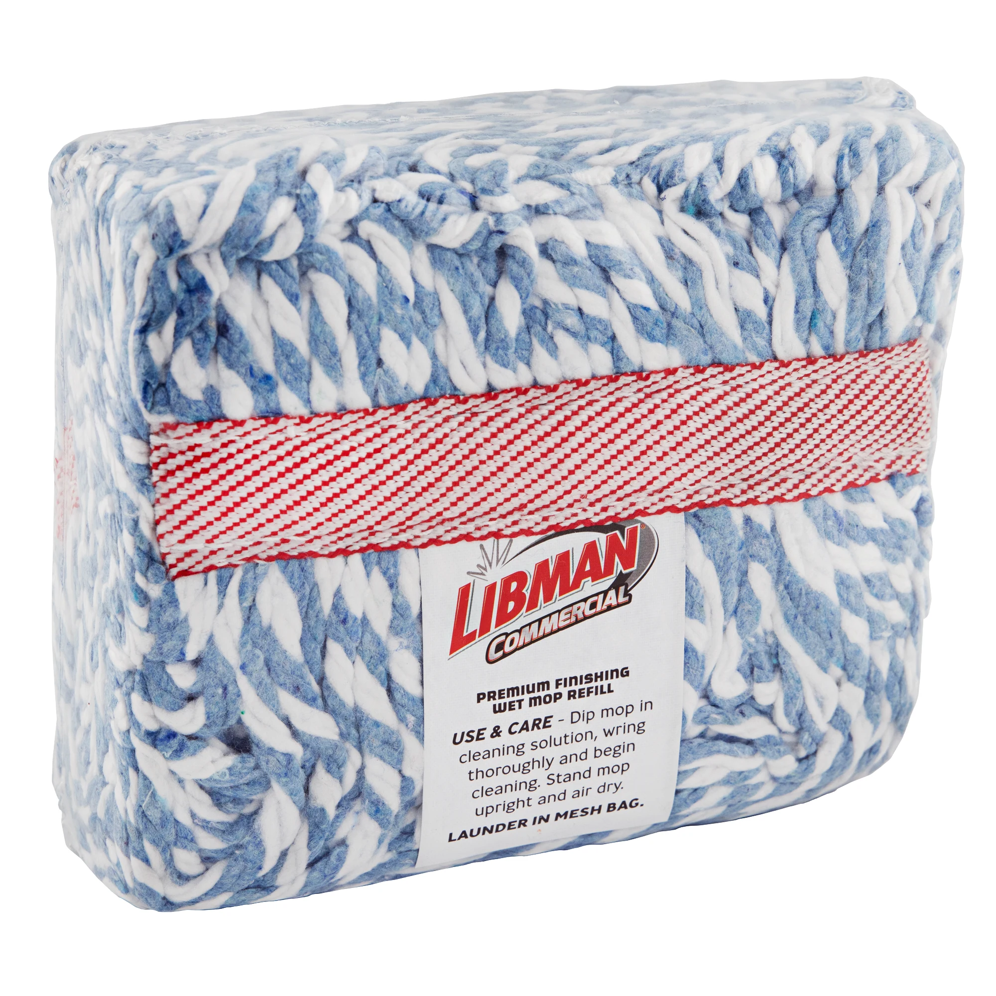 Break-in by soaking overnight. Ideal for applying finish and disinfectant. Cotton provides excellent absorbency. Long fibers provide maximum efficiency to shorten cleaning time. Considered the highest quality, best value style. Has up to 8 times longer life and does a much better job in shorter time, reducing labor by as much as 50%.