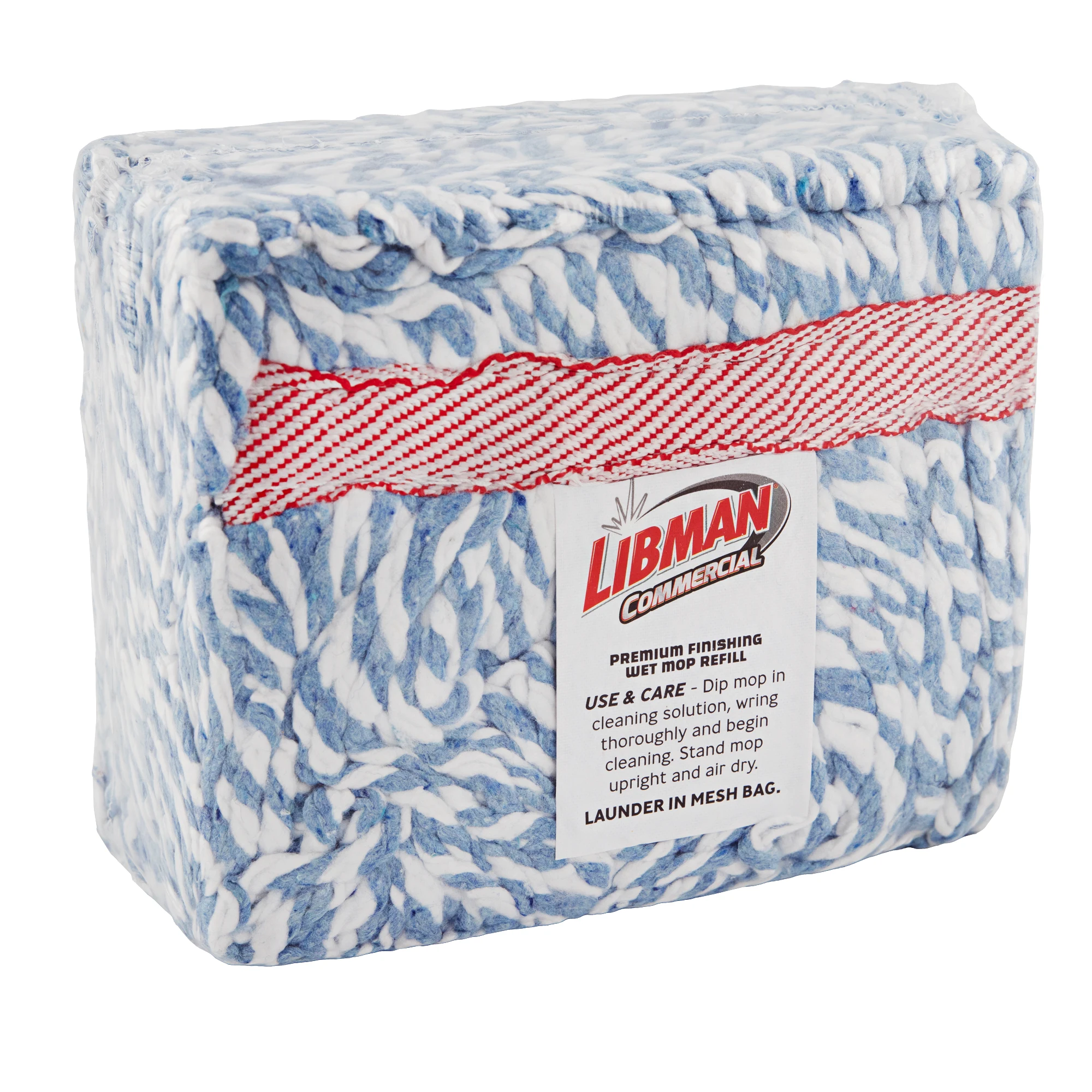 Break-in by soaking overnight. Ideal for applying finish and disinfectant. Cotton provides excellent absorbency. Long fibers provide maximum efficiency to shorten cleaning time. Considered the highest quality, best value style. Has up to 8 times longer life and does a much better job in shorter time, reducing labor by as much as 50%.