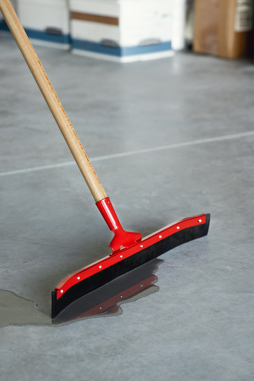 Remove water, chemicals, and mud from a variety of smoother surfaces with the Heavy Duty Curved Floor Squeegee. It is excellent for use on patios, walkways, and industrial sites, as the firm rubber blade is made from real, vulcanized, natural rubber. It's curved design enables the user to easily contain the liquid in front of the squeegee. The steel squeegee backer, as well as the 1.13” thick wood handle, make it the ideal heavy-duty solution to contain and remove liquid cleanups.