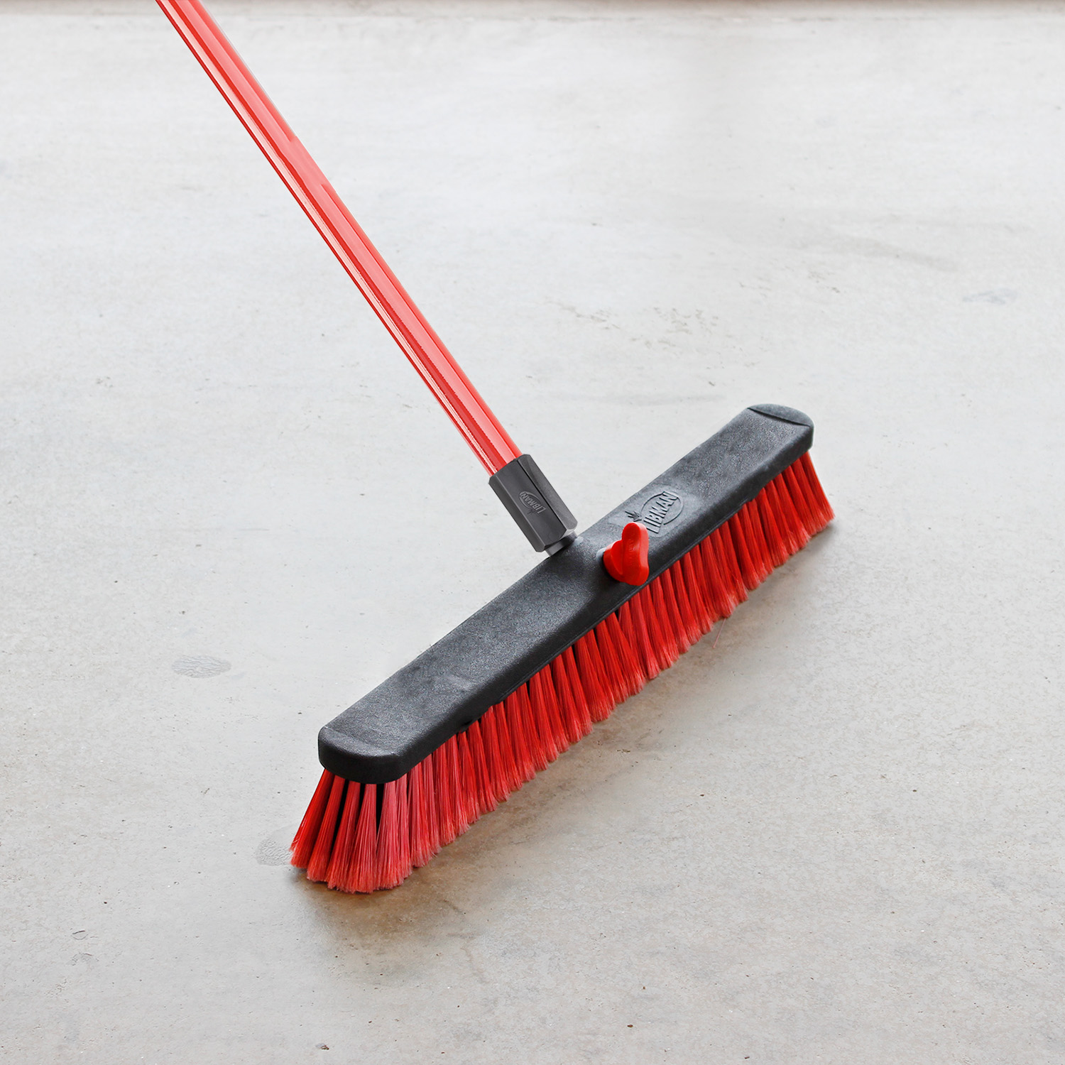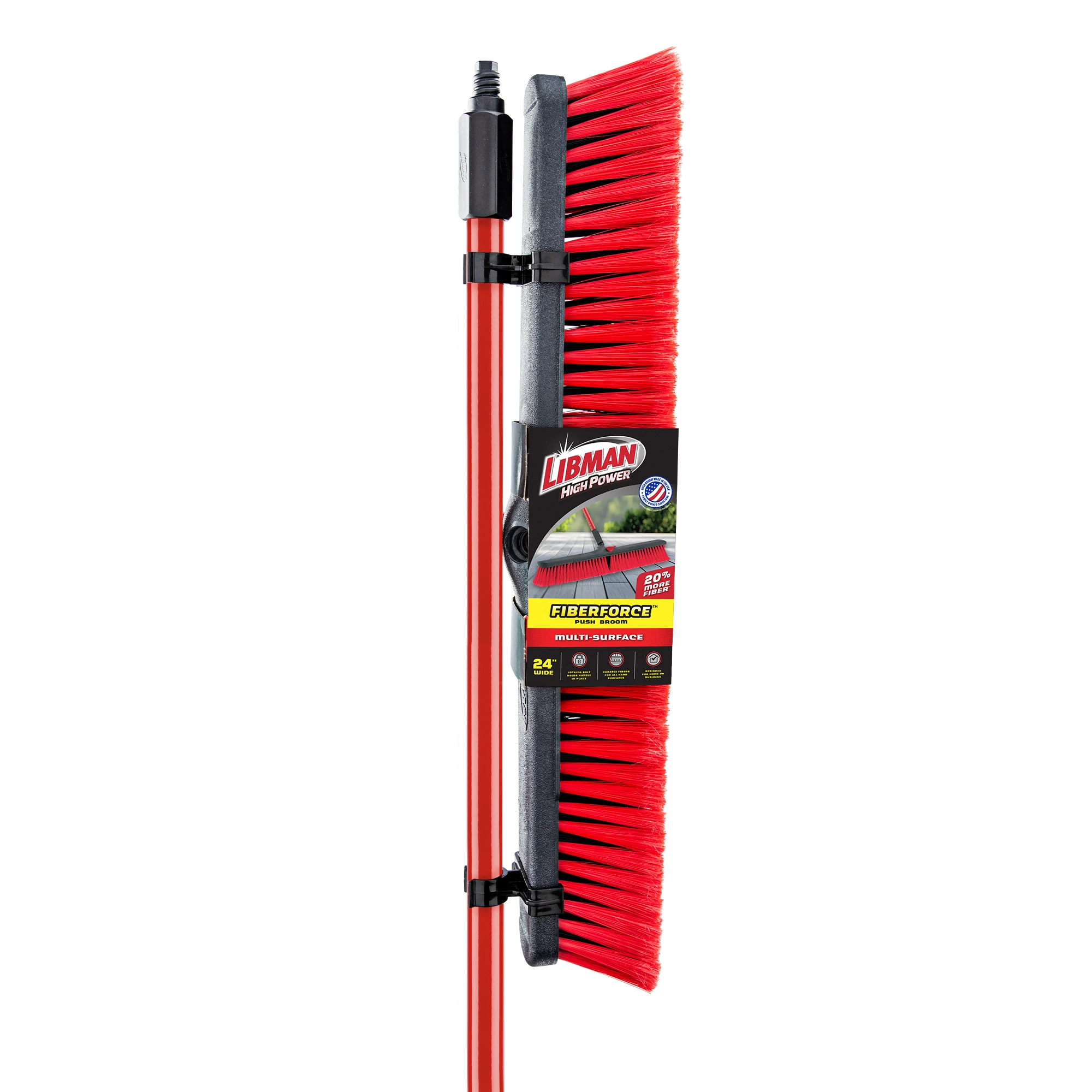 Whether cleaning fine dust or large debris, the FiberForce™ Multi-Surface Push Broom captures everything across almost any surface. With a 25.5” sweeping width, the broom head clears away debris with it's flexible and firm fibers made from recycled PET bottles. The 60” steel, powder-coated handle forms to any dings and resists chipping. It also comes equipped with a hanger hole on the handle grip for convenient storage.