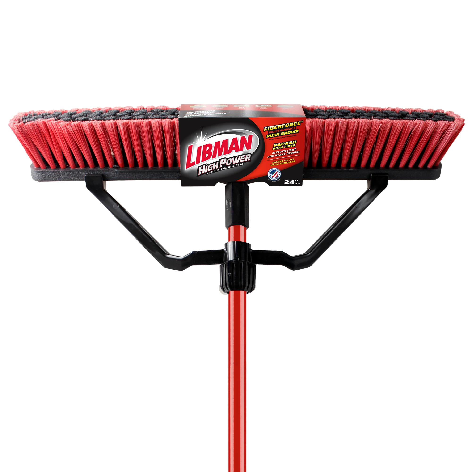 Whether cleaning fine dust or large debris, the 24” FiberForce™ Multi-Surface Heavy Duty Push Broom captures everything across almost any surface. The 24” polymer broom head clears away all sizes of material with its flexible and firm fibers made from recycled PET bottles. The 60” steel, powder-coated handle forms to any dings and resists chipping. It also comes equipped with a hanger hole on the handle grip for convenient storage.