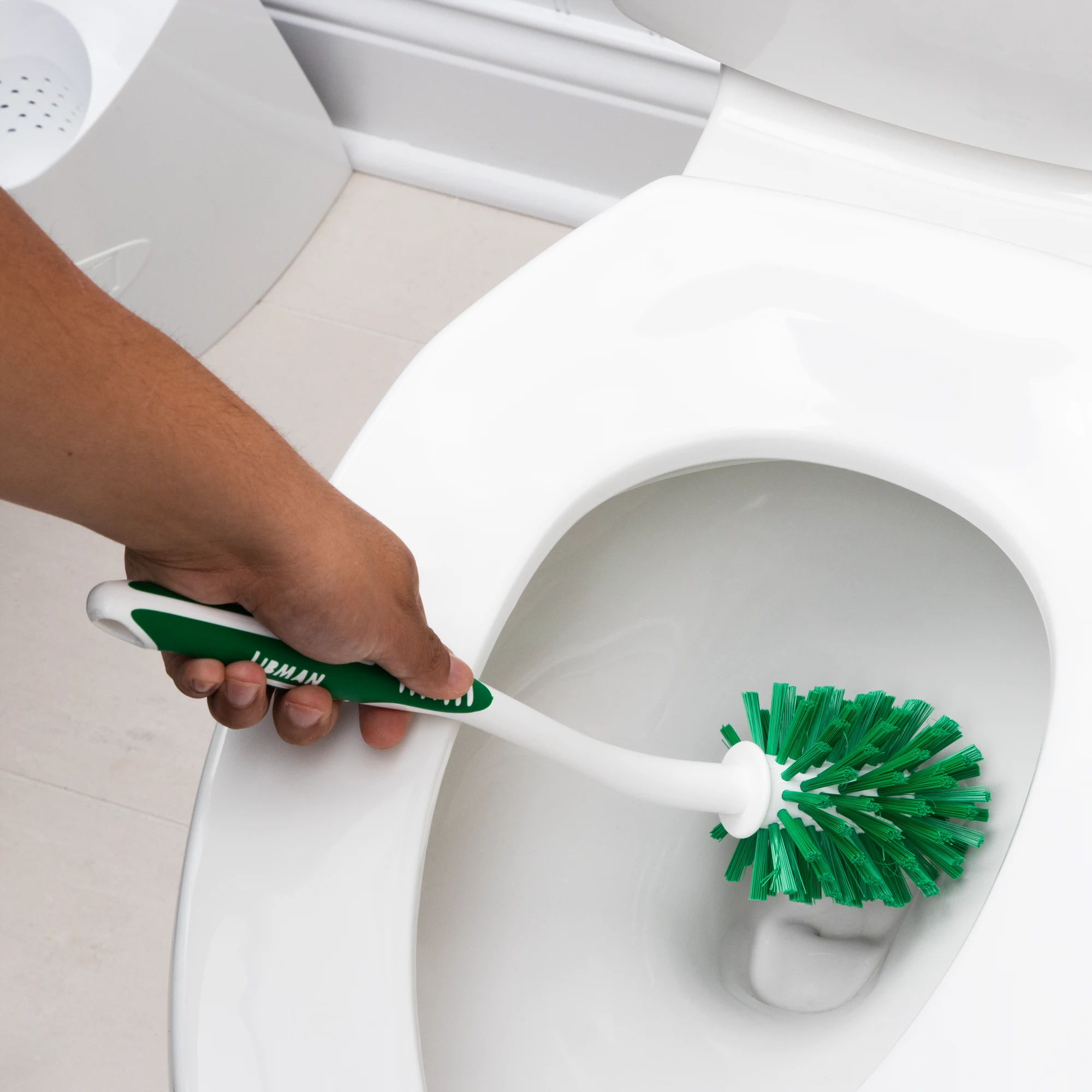 The Angled Toilet Bowl Brush has a curved design to scrub off debris. This brush also features a non-slip grip and a long handle.