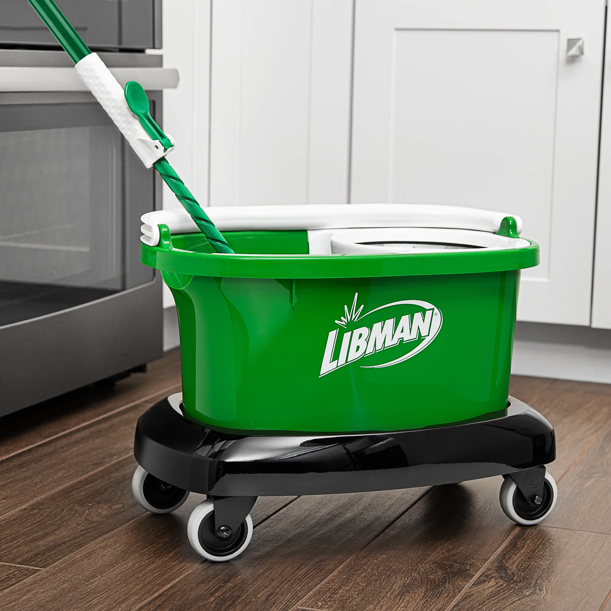 Designed for convenience and durability, the Libman Bucket Trolley makes transporting your Spin Mop Bucket and other Household Buckets a breeze. With four premium, smooth-rolling wheels, your buckets will glide across floors quickly and easily, eliminating the strain of heavy lifting. Whether you are managing a quick clean up or a deep house refresh, the Libman Bucket Trolley is your go-to solution for convenience and reliability.