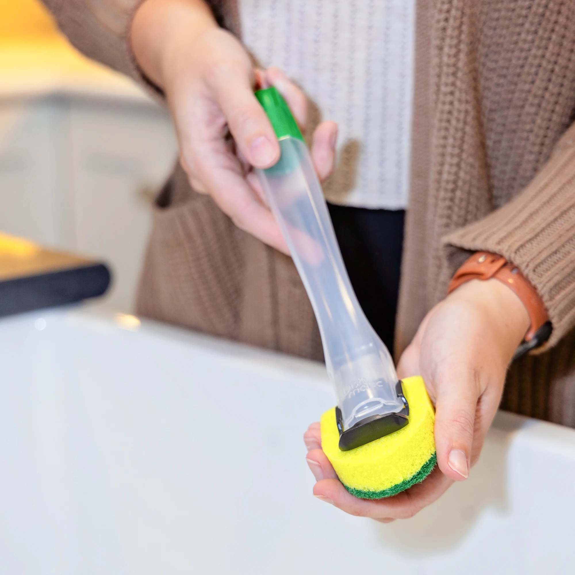 - Easy on and off insert plate slides onto dish wand