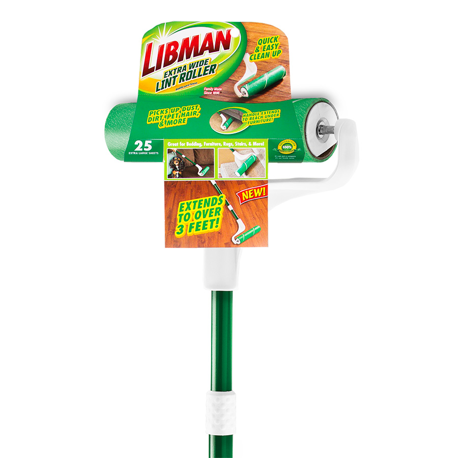 The Extra-Wide Lint Roller removes hair, lint, dust, small crumbs, and more from various places. The extendable handle, with a convenient twist-and-lock design, makes any job easy, whether you are getting underneath furniture or cleaning drapes. The 12” wide roller covers a large surface area quickly and holds onto a plethora of dust.