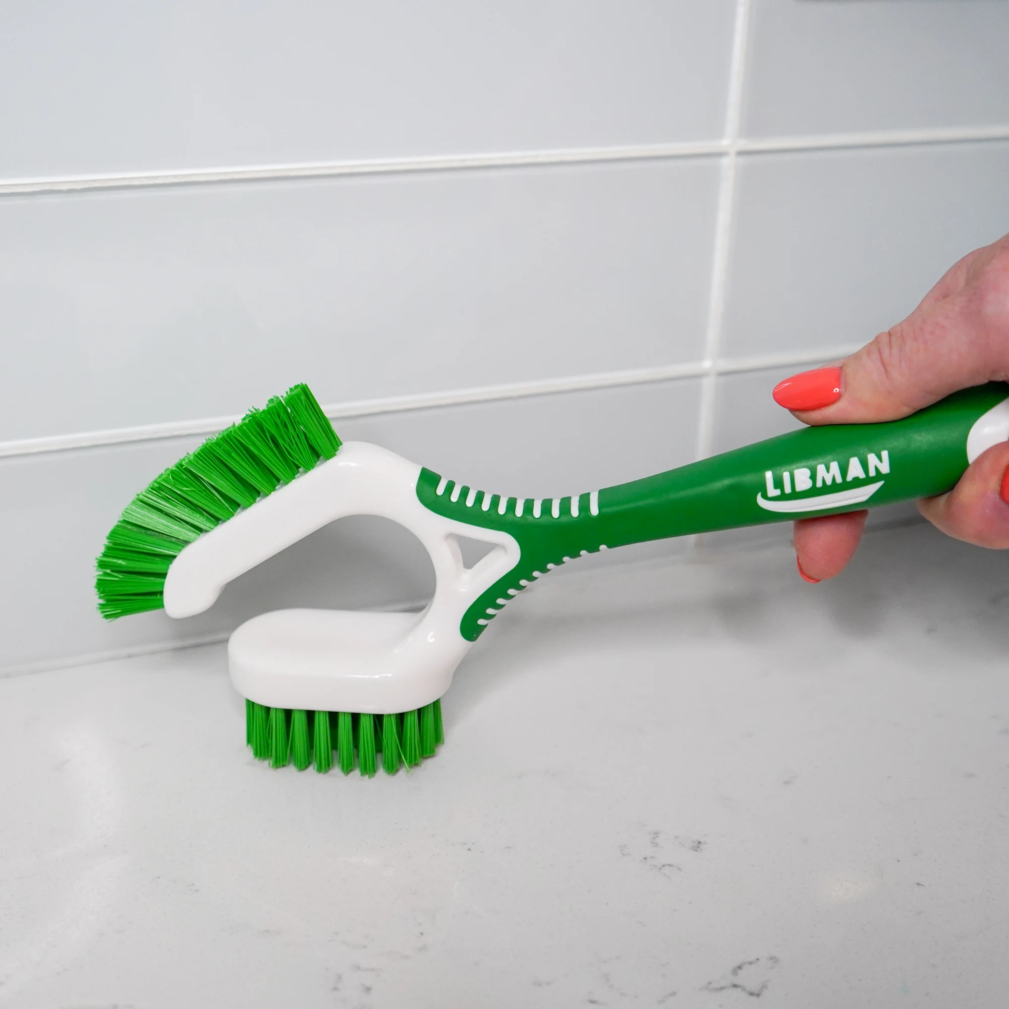 - Narrow grout brush on one side with wider, all-purpose scrub brush on the other