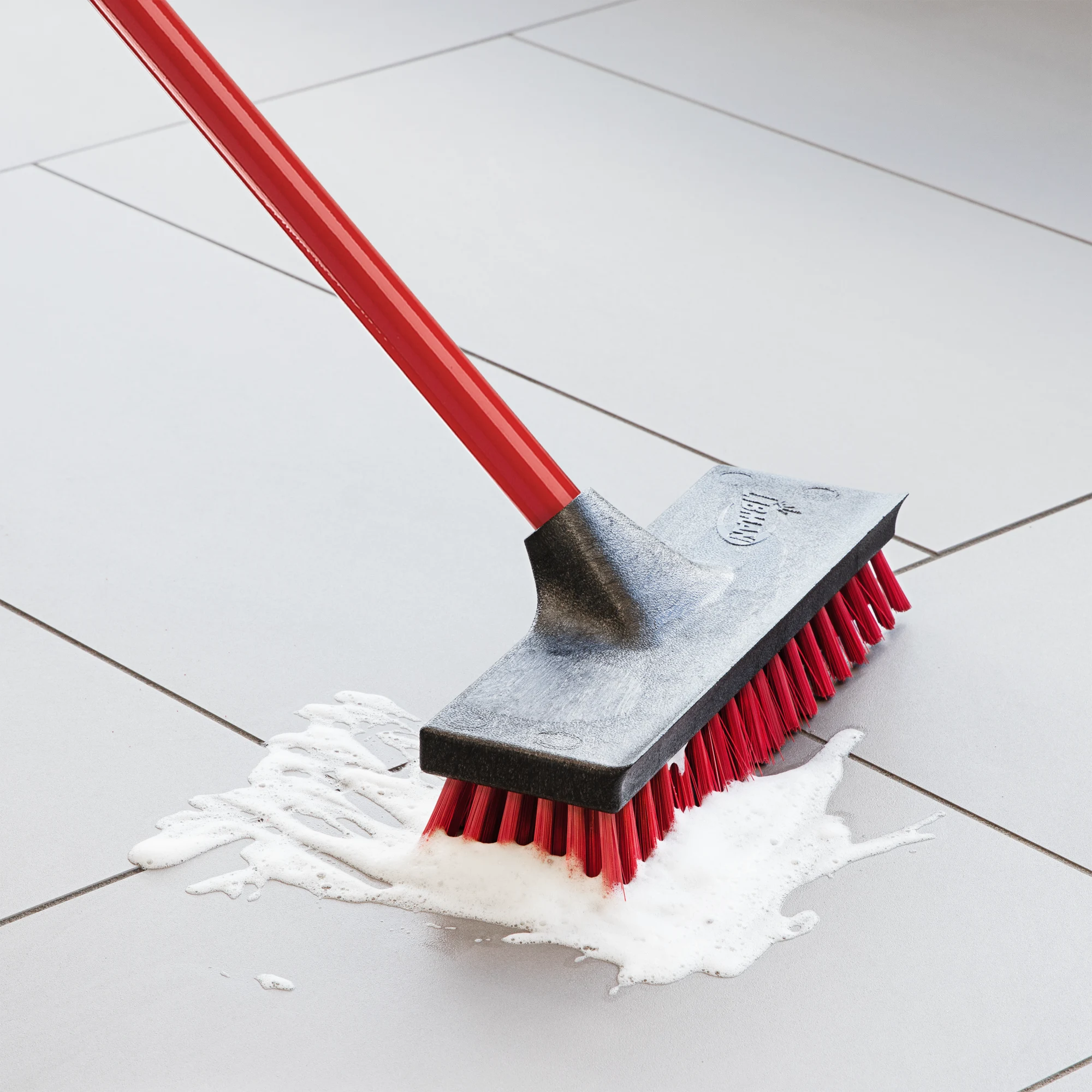 The Floor Scrub is the ideal heavy-duty cleaning tool designed to handle the toughest jobs. The stiff fibers and built-in scraper remove heavy debris from cracks and all surface types.