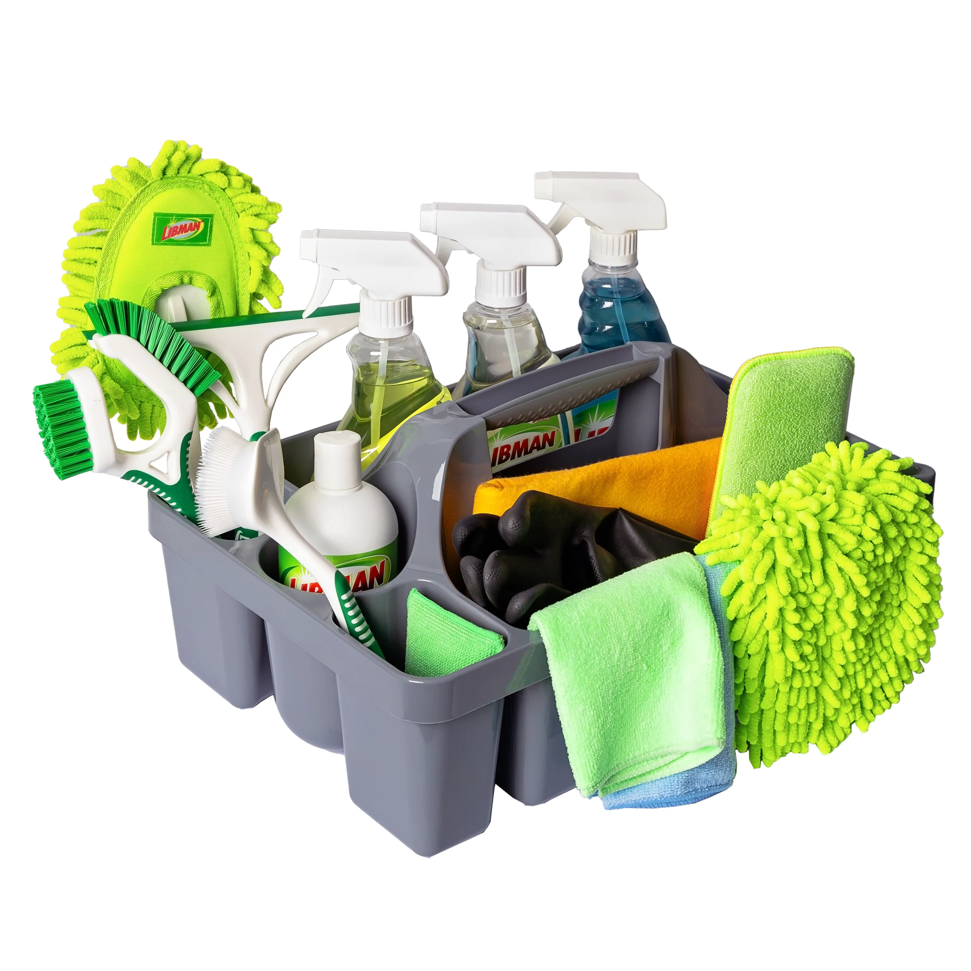 The Maid Caddy is designed to accommodate a wide array of cleaning needs for multiple applications. It features 2 bottle compartments capable of carrying up to six 32-oz. spray bottles, a toilet bowl brush holder that fits all standard bowl brushes, 2 sponge/tool compartments, and a trinket compartment. Made from a durable one-piece polypropylene mold and featuring a riveted handle grip, this Maid Caddy resists cracking and allows the user to carry what they need in one hand.