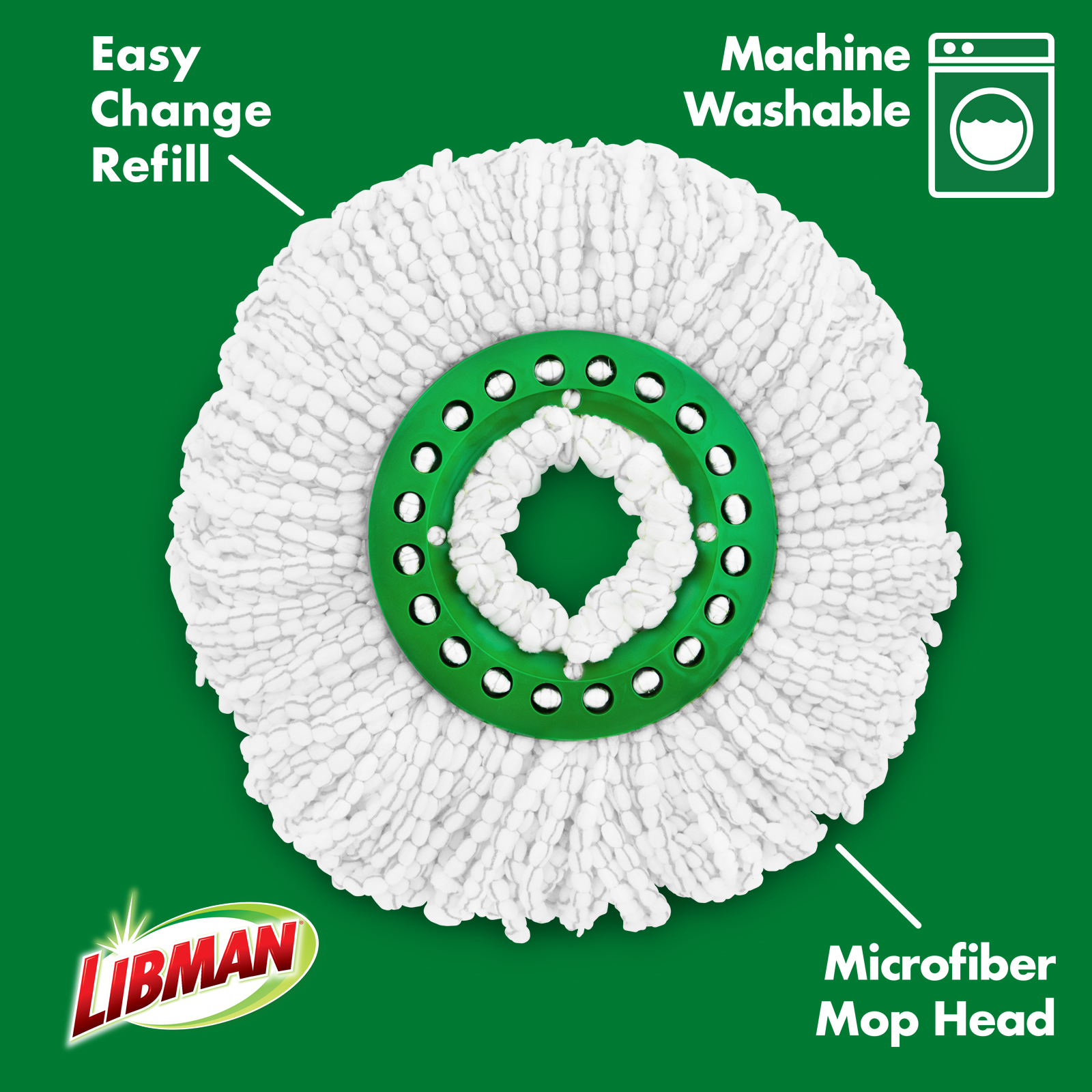 - Extra-large, machine-washable microfiber mop head