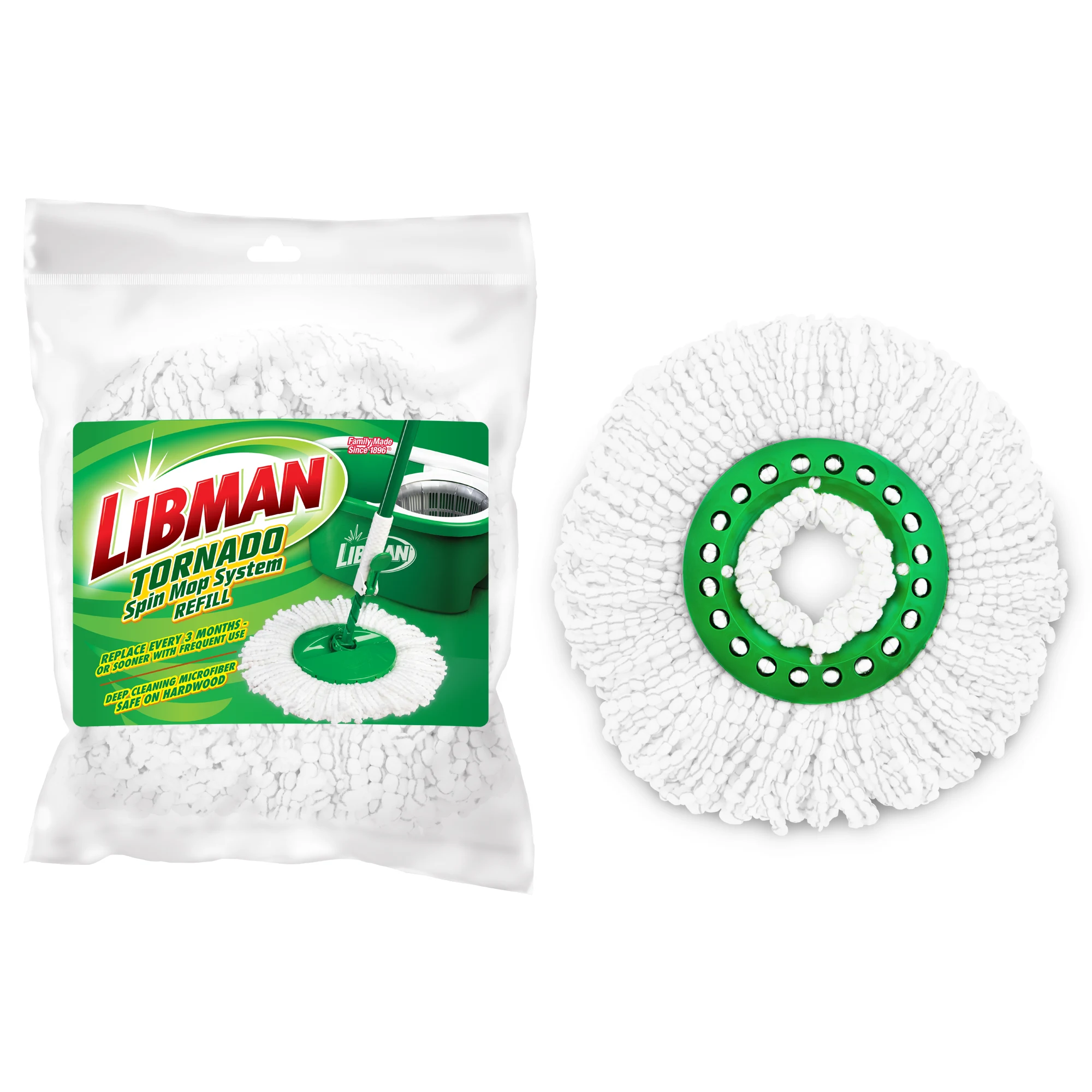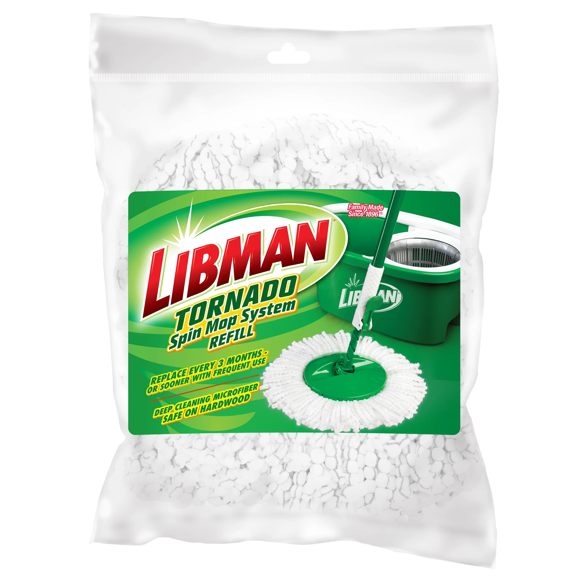 The Tornado Spin Mop™ System Refill is a replacement mop head for the Tornado Spin Mop™. The extra-large, microfiber mop head is safe for hardwood floors and effectively cleans tough messes. The microfiber is tough enough for dirt and grime but soft enough that it won’t scratch floors, and is machine-washable. It is easy to replace so you can keep mopping with a fresh mop head.